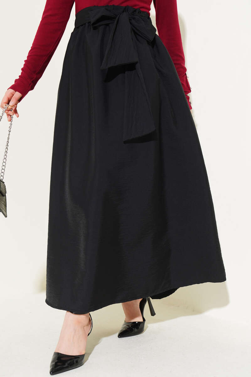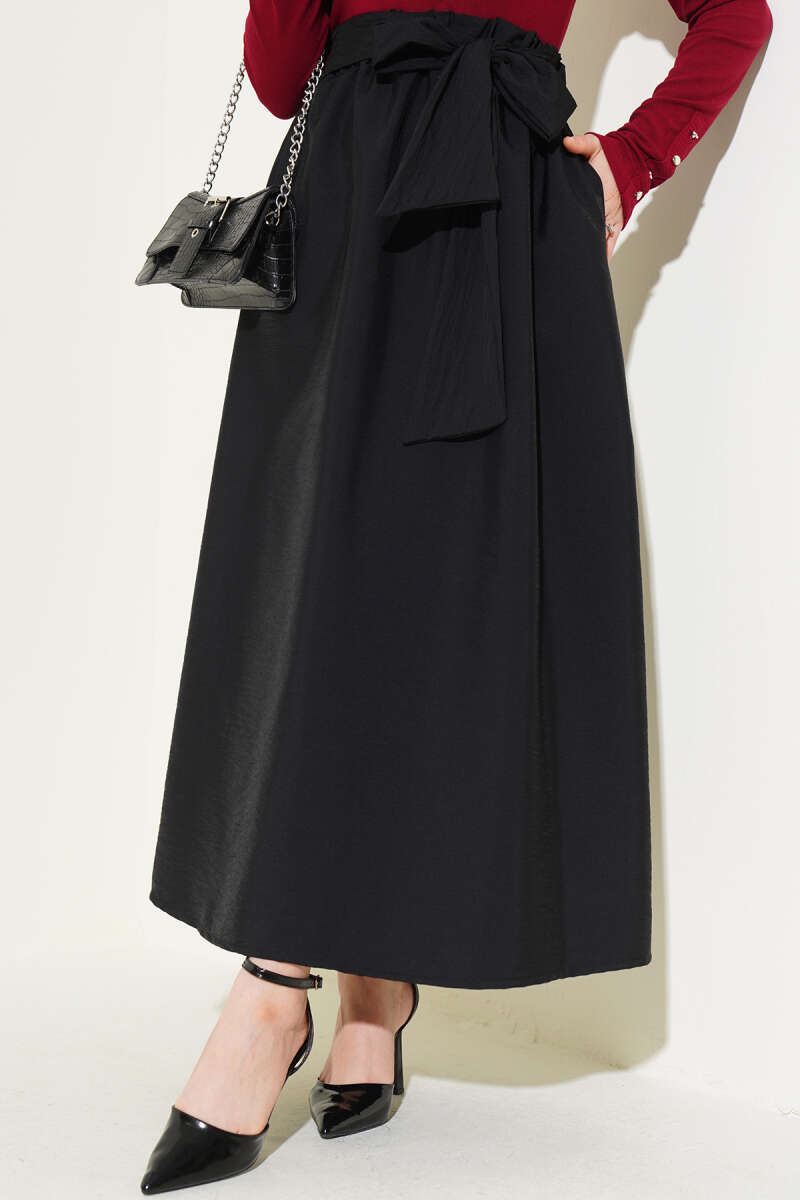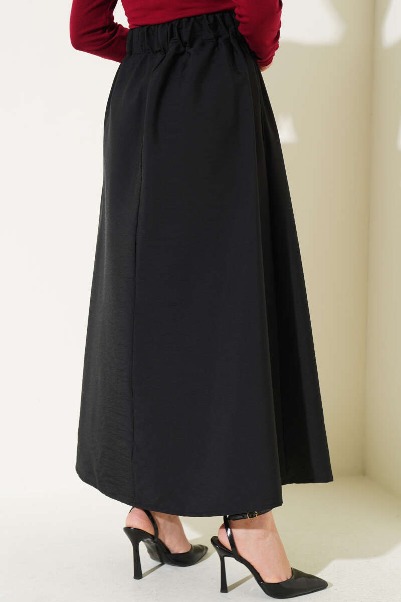 Fırfırlı Pileli Bel Lastikli Etek Lacivert
