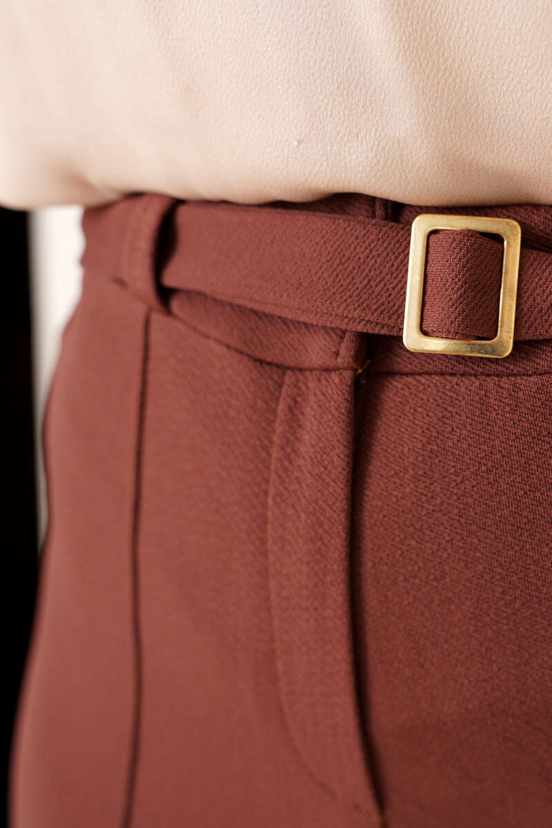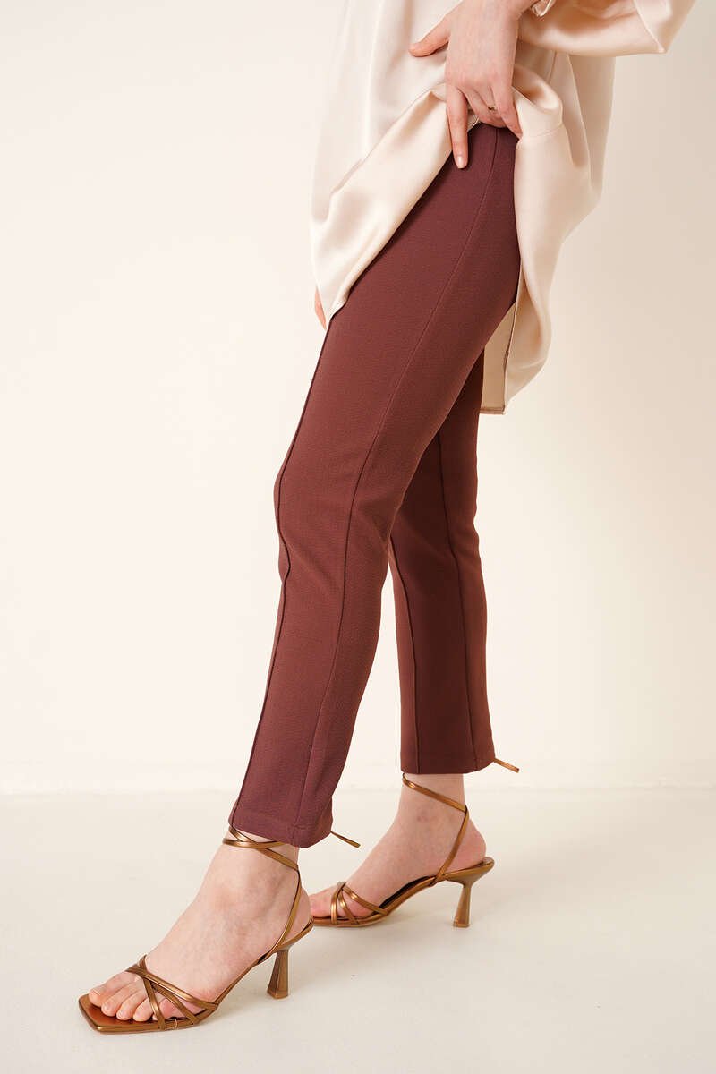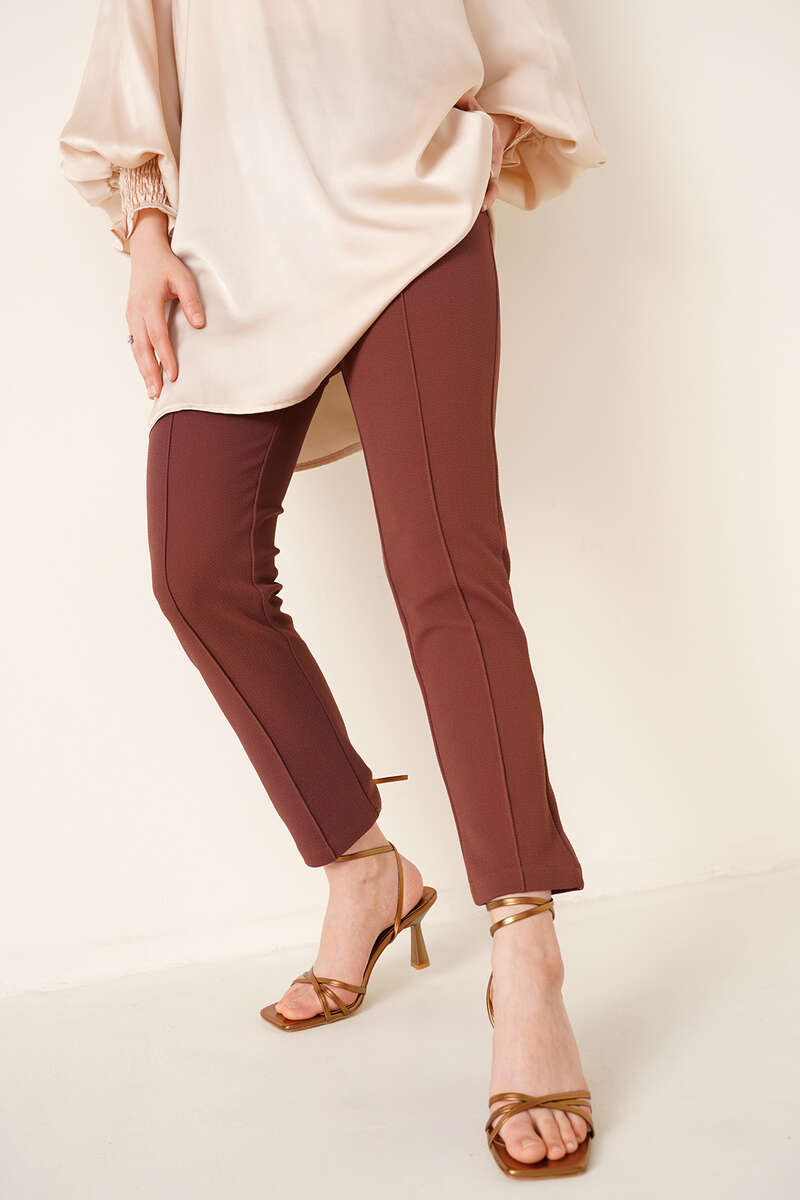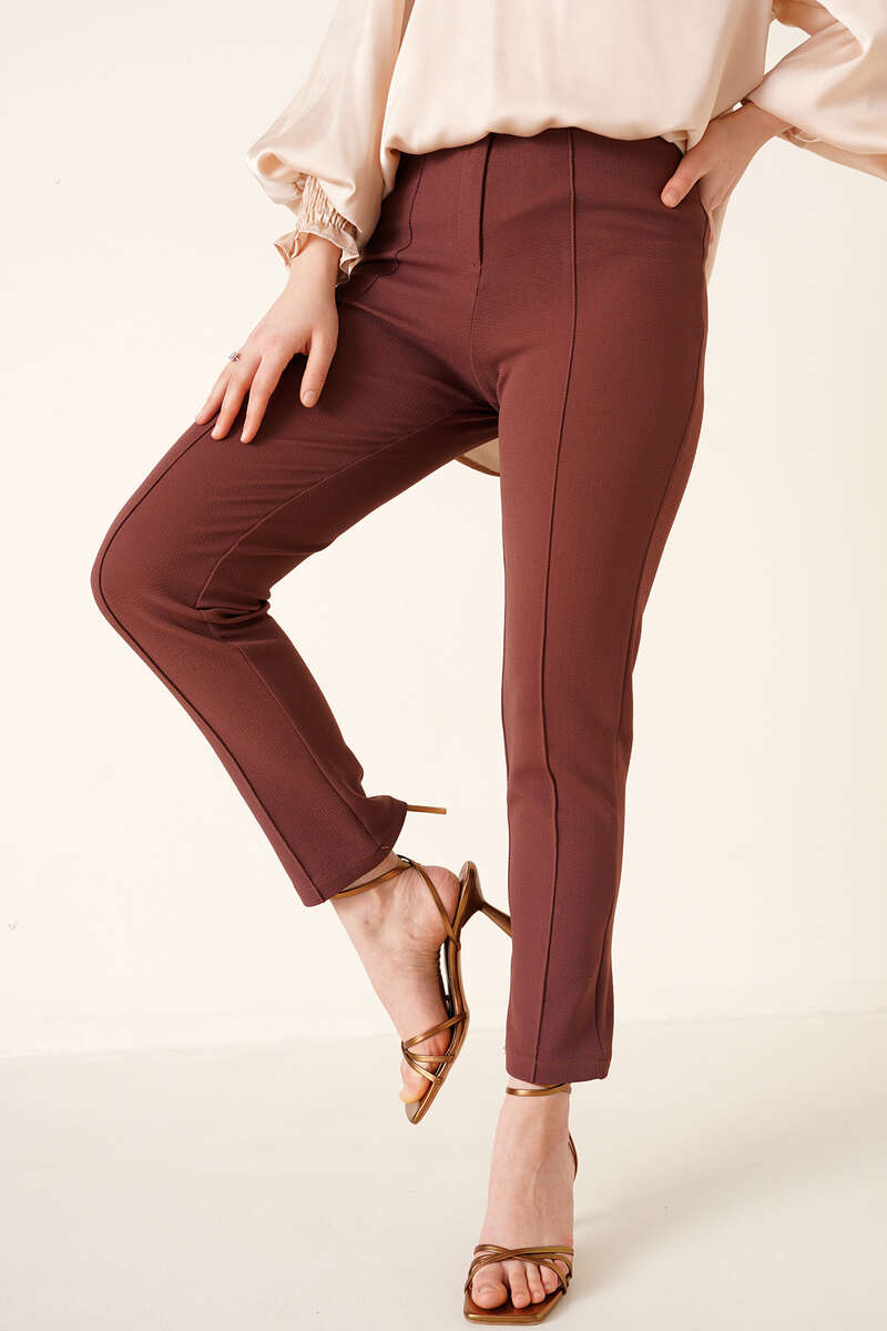 Yeni sezon pantolon kendinden kuşaklıdır. Önü çımalı model olan pantolonumuz çıtçıt düğmeli ve fermuarlıdır. Pantolonumuz kombinlerinizde sıklıkla kullanacağınız bir parça olacaktır.