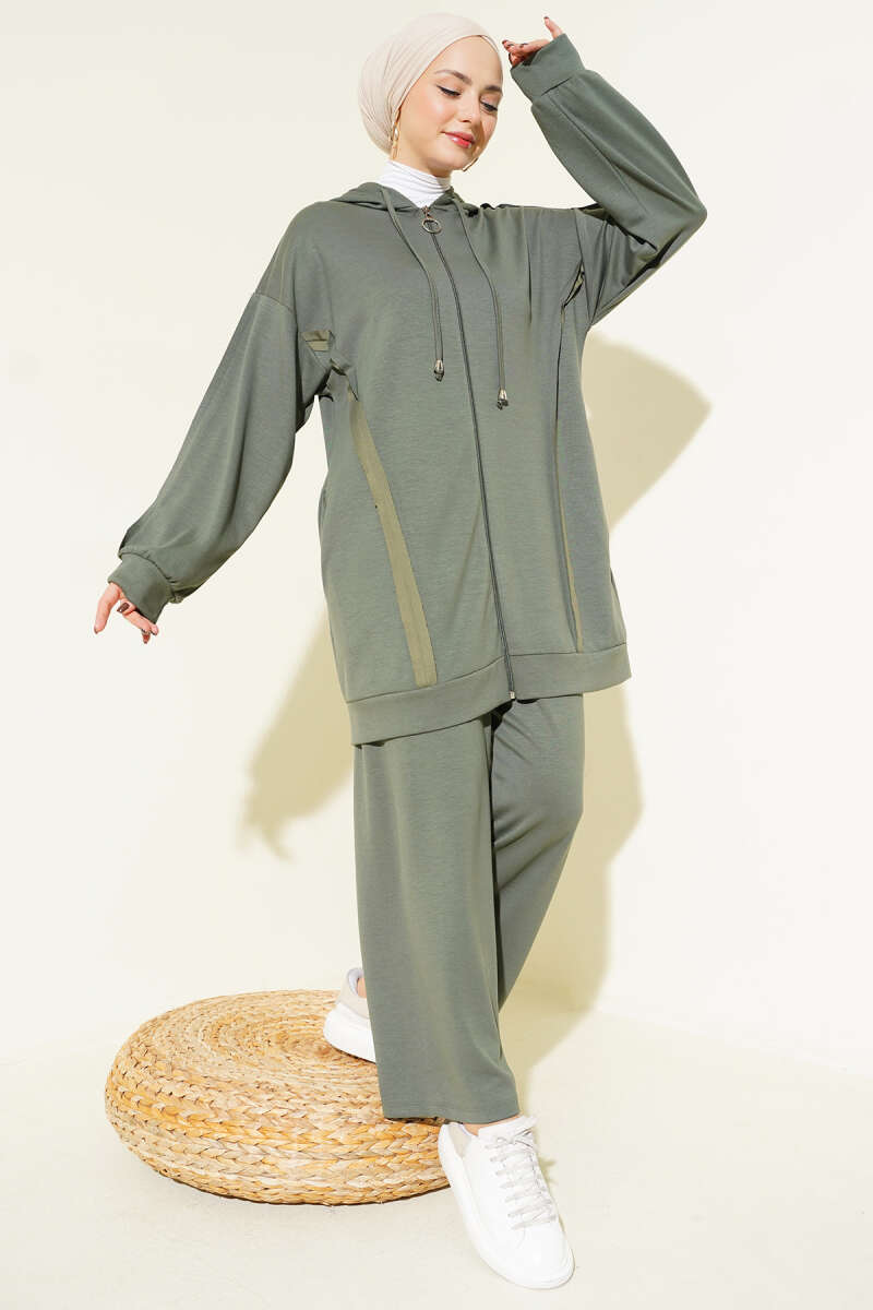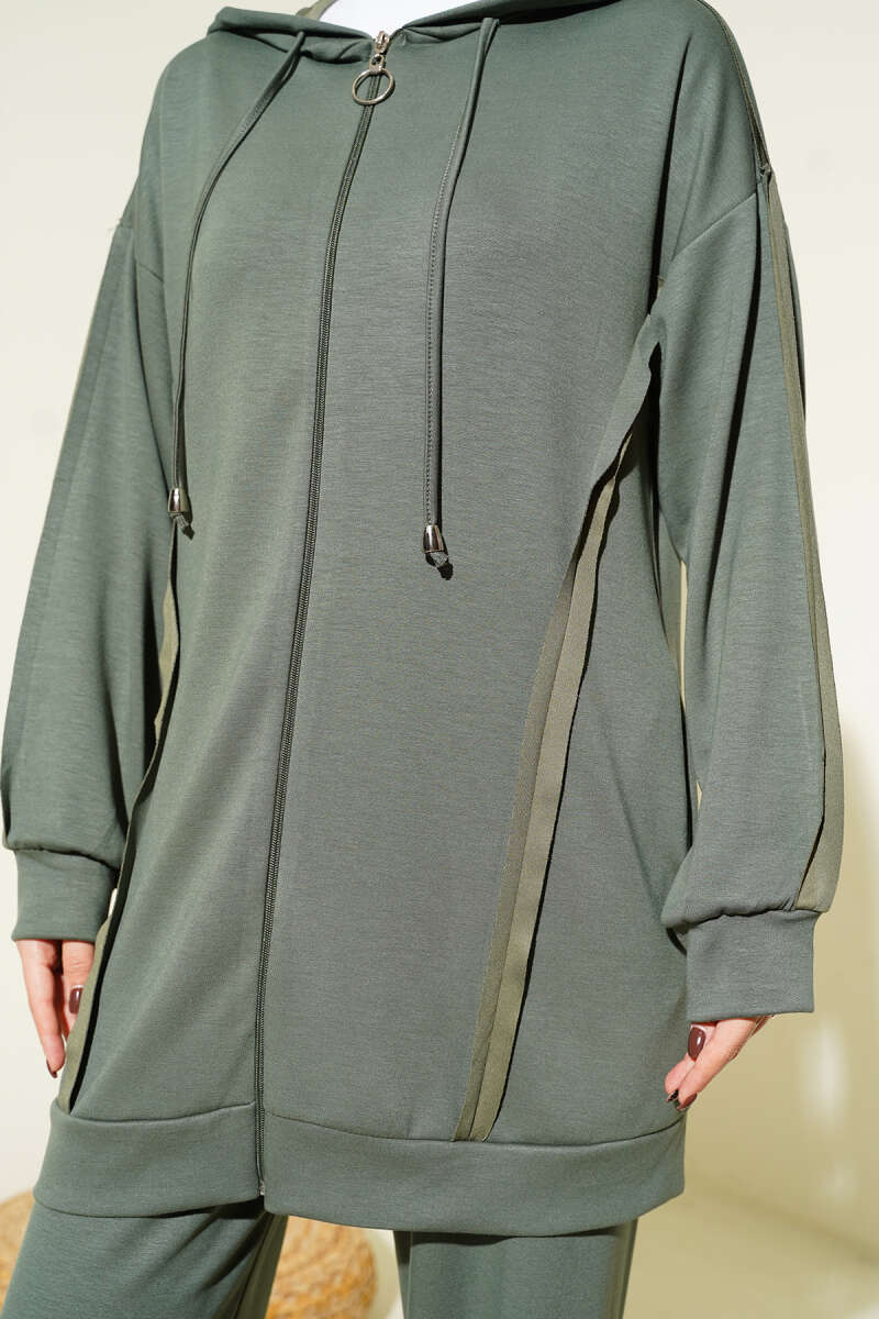 Kendinden Şeritli Kapüşonlu Loyşa İkili Takım Kahve