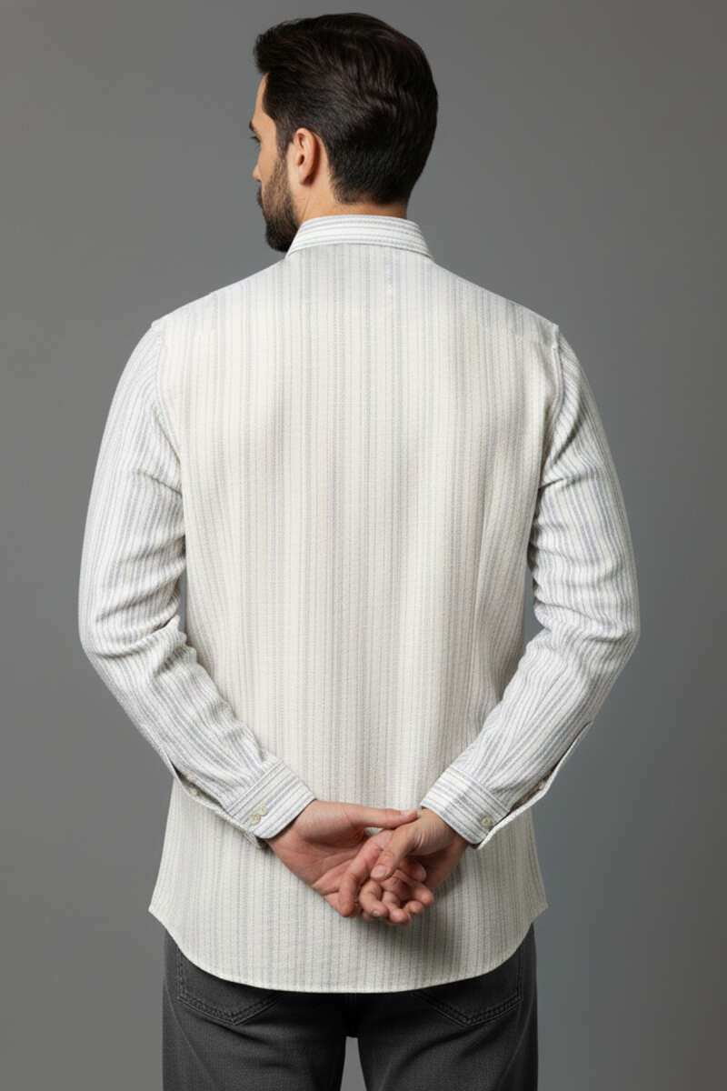 Geniş Çizgili Erkek Keten Gömlek Gri