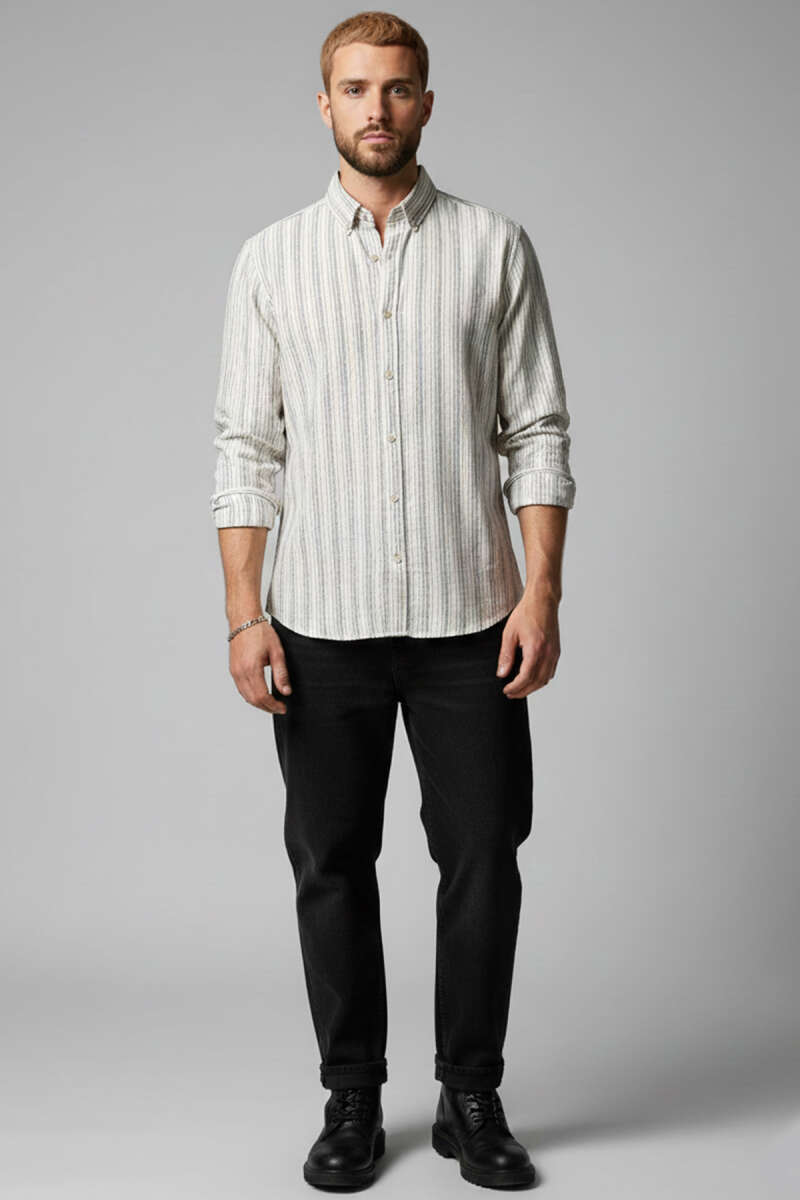 Yaka Düğmeli Basic Erkek Gömlek Beyaz