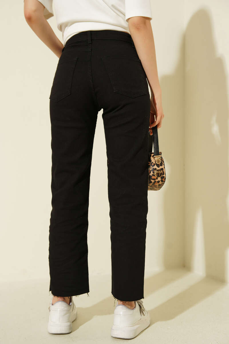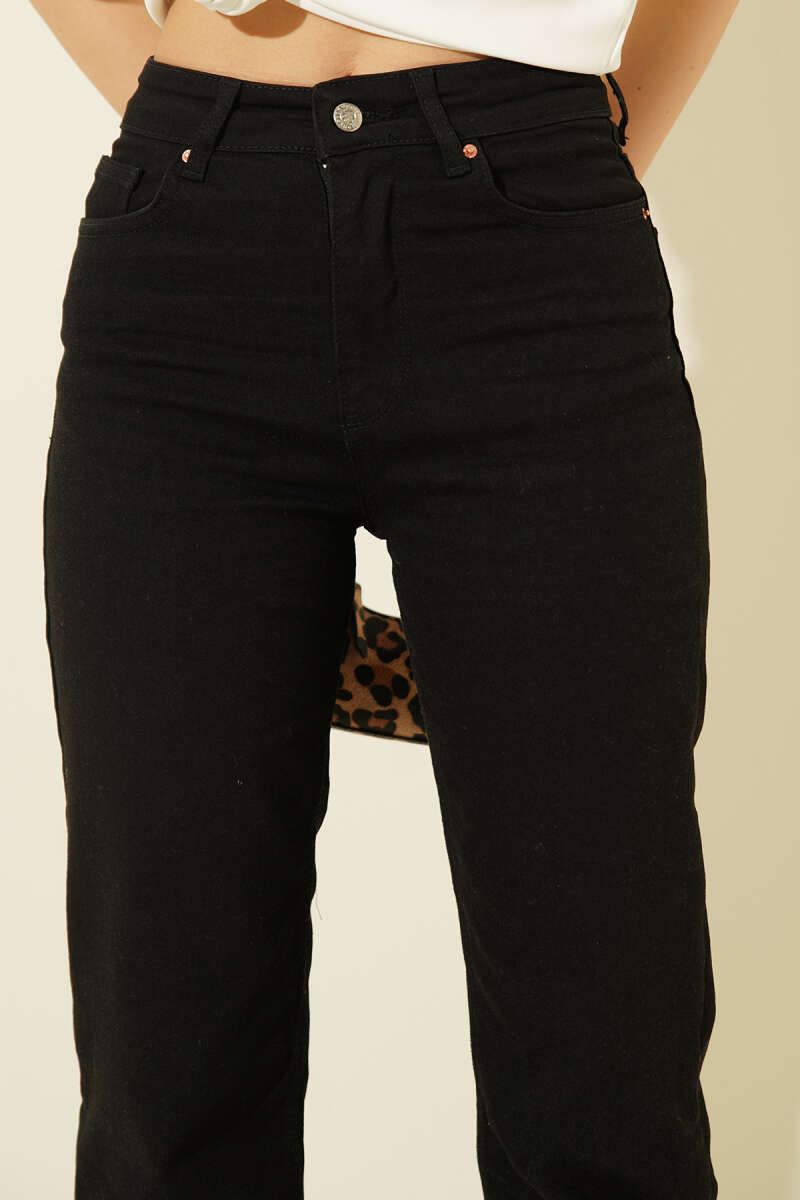 Kesik Dar Paça Düğmeli Kot Pantolon Siyah
