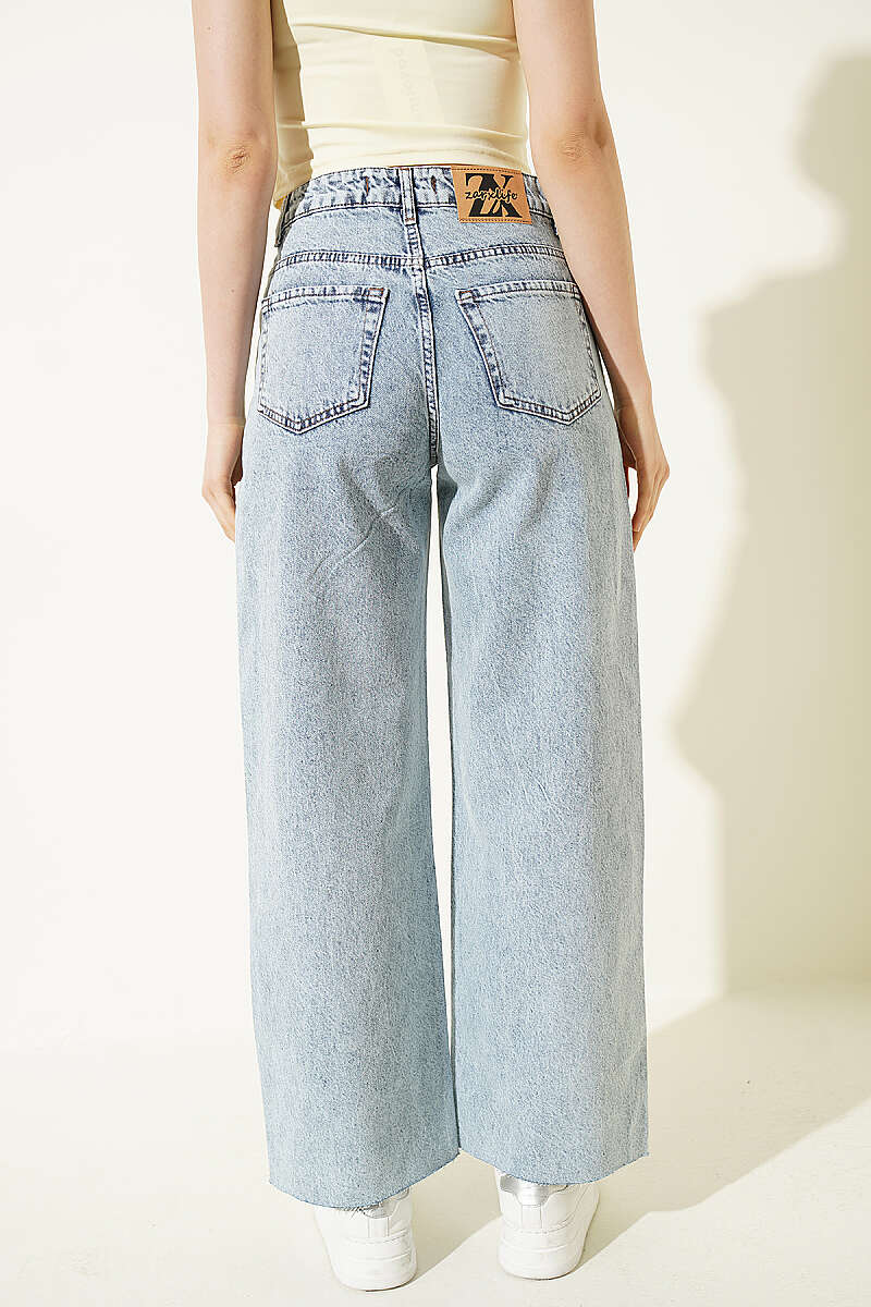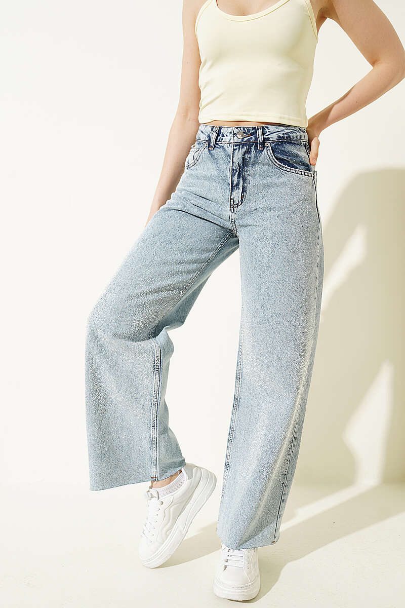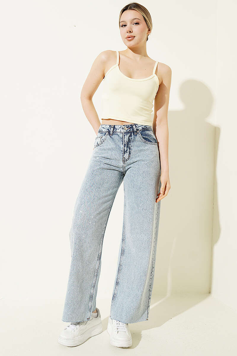 Kesik Paça Mini Taş Detaylı Palazzo Pantolon Açık Kar