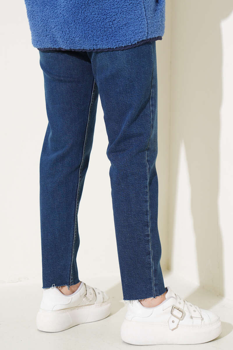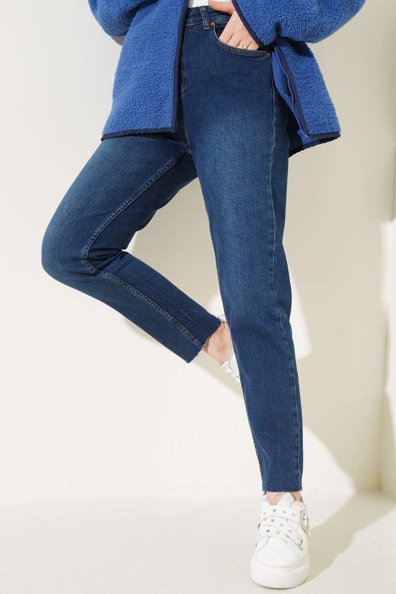 Kesik Paça Mom Jean Pantolon Koyu Tint