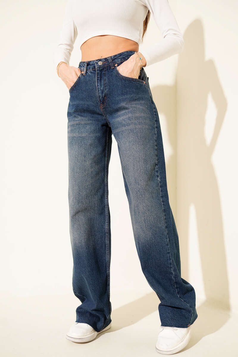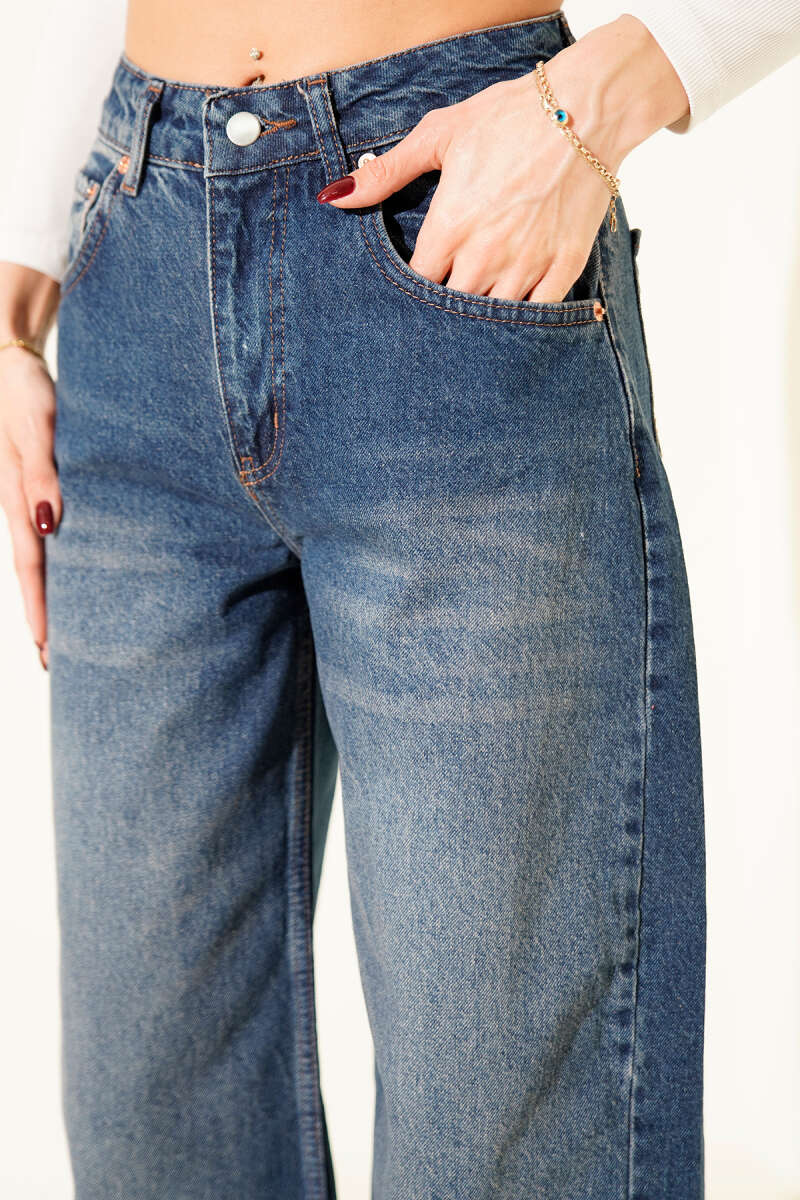 Arka Tokalı Geniş Paça Salaş Kot Pantolon Açık Mavi