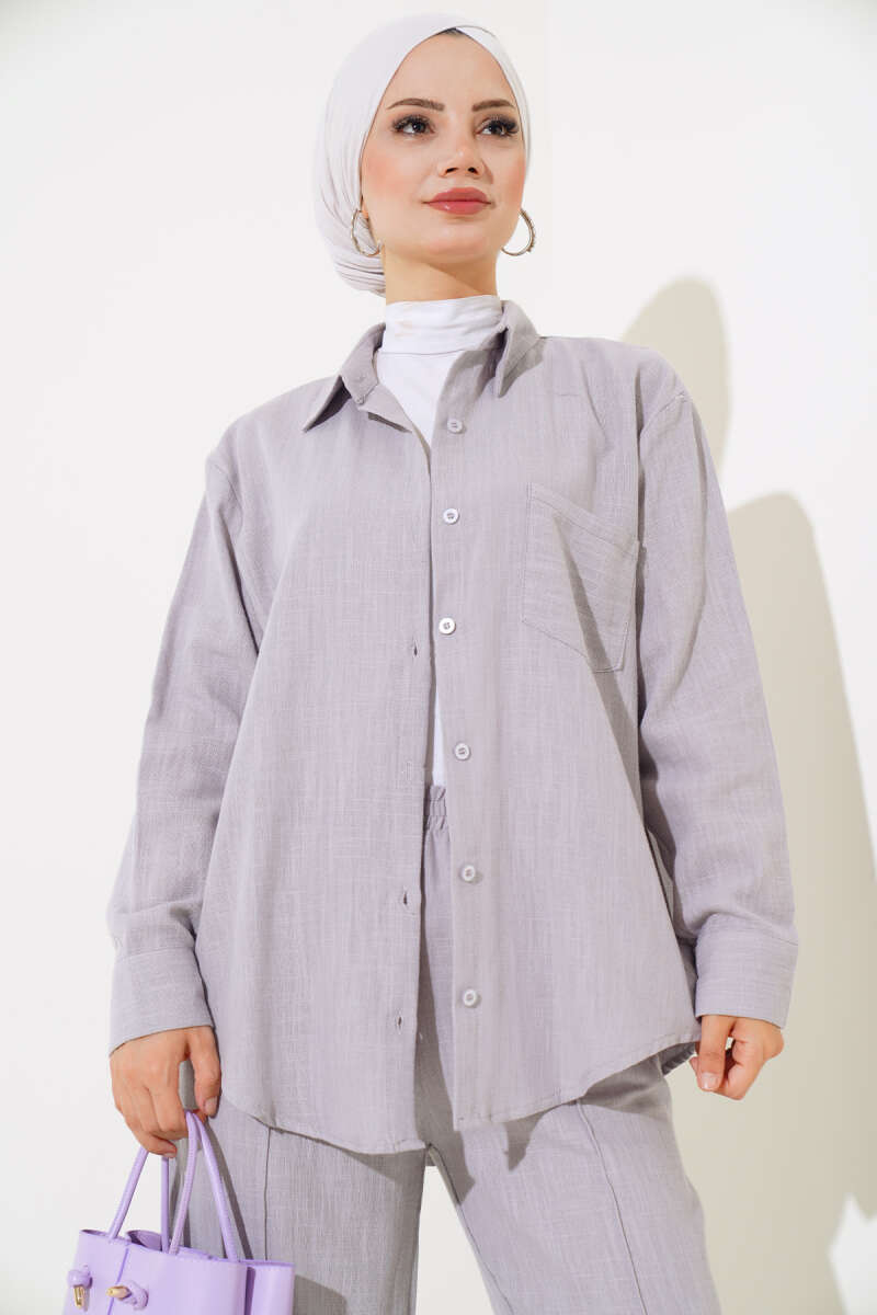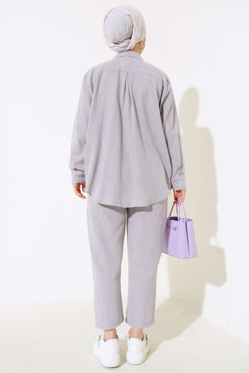 Önü Mini Düğmeli Elbise İkili Takım Füme