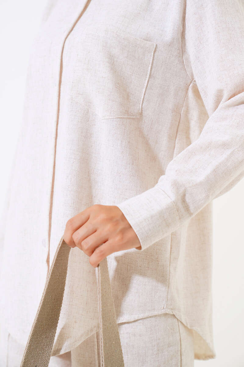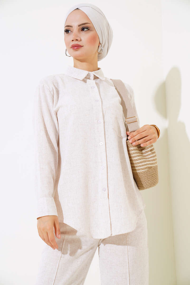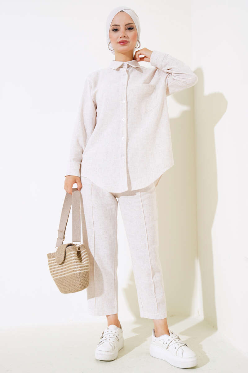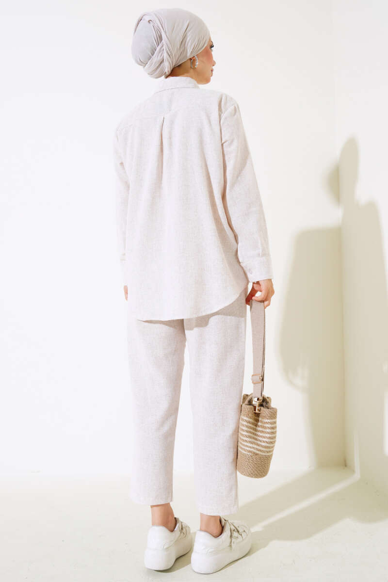 Yaka İncili Uzun Tunik İkili Takım Vizon