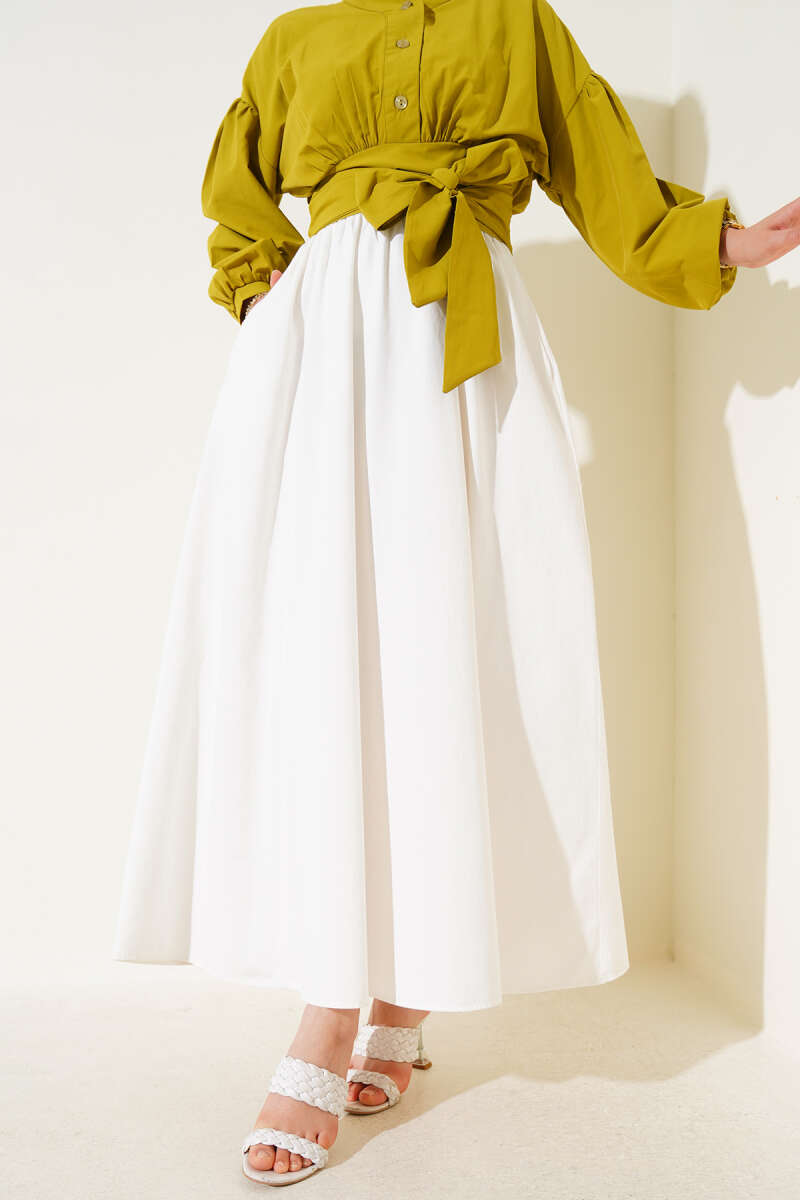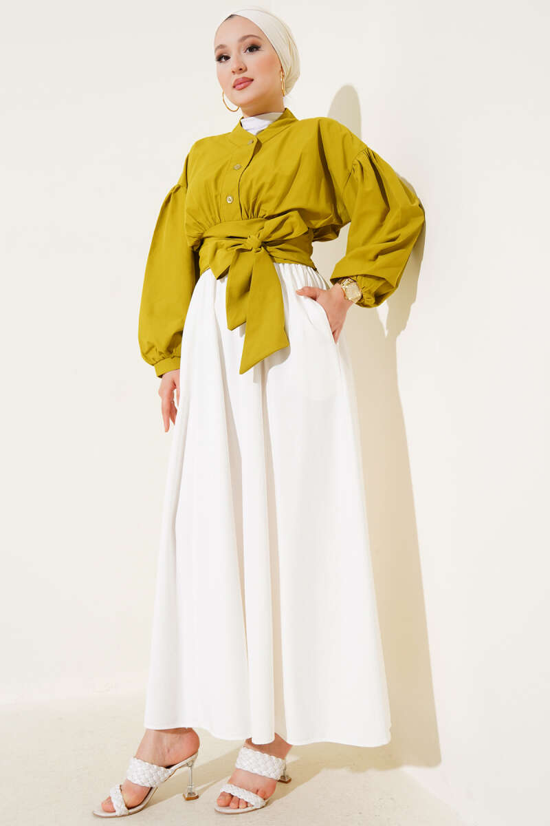 Bebe Yaka Düğmeli Etekli İkili Takım Haki