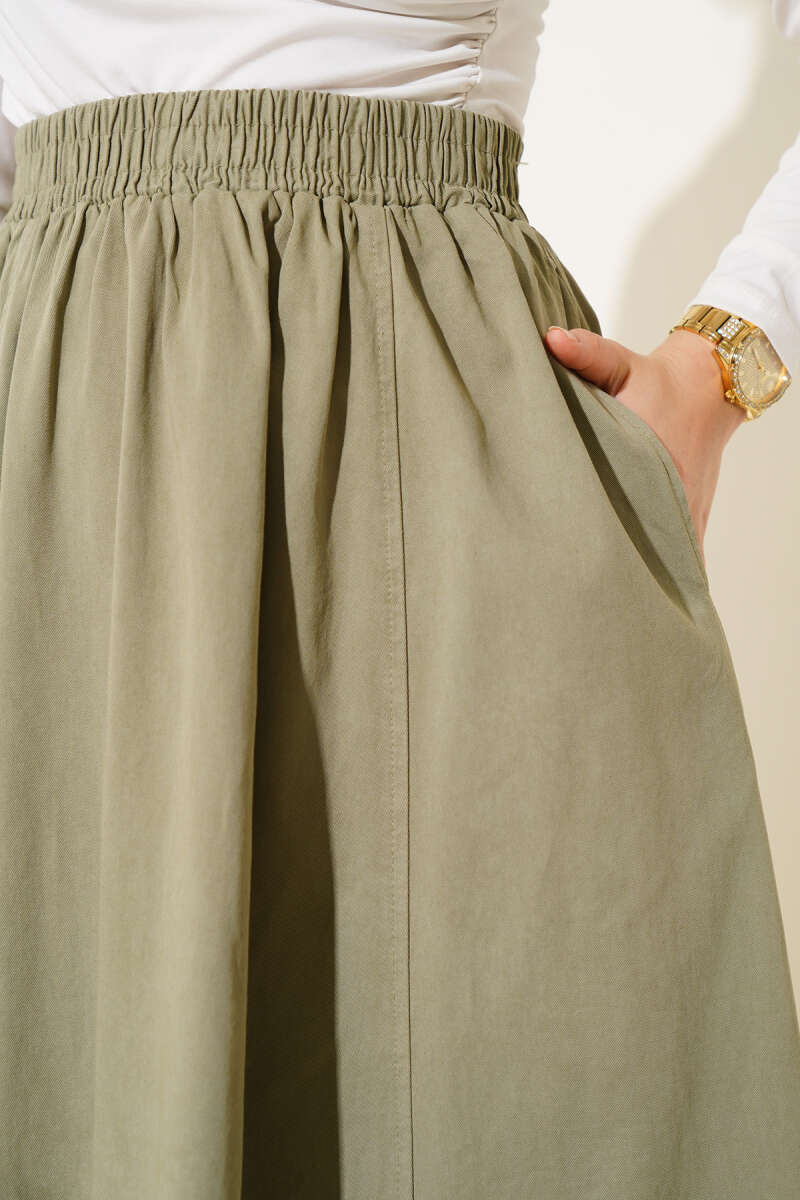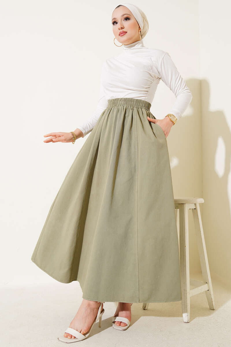 Bebe Yaka Düğmeli Etekli İkili Takım Haki
