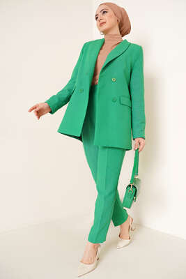 Yeni sezon keten ikili takımımız pantolon ve ceketten oluşmaktadır. İkili takımımızın ceketi mono yakadır. Hem iç hem dış düğmesi bulunan ceketimiz iki adet kapaklı süs cebe sahiptir. İçi astarlıdır. İkili takımımızn pantolonu pens detaylıdır. Beli arkadan lastikli oaln pantolonumuzun iki adet cebi vardır. Cepleri kullanılalbilmektedir.