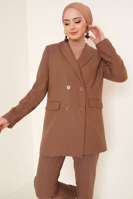Yeni sezon keten ikili takımımız pantolon ve ceketten oluşmaktadır. İkili takımımızın ceketi mono yakadır. Hem iç hem dış düğmesi bulunan ceketimiz iki adet kapaklı süs cebe sahiptir. İçi astarlıdır. İkili takımımızn pantolonu pens detaylıdır. Beli arkadan lastikli oaln pantolonumuzun iki adet cebi vardır. Cepleri kullanılalbilmektedir.