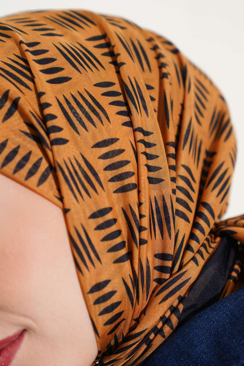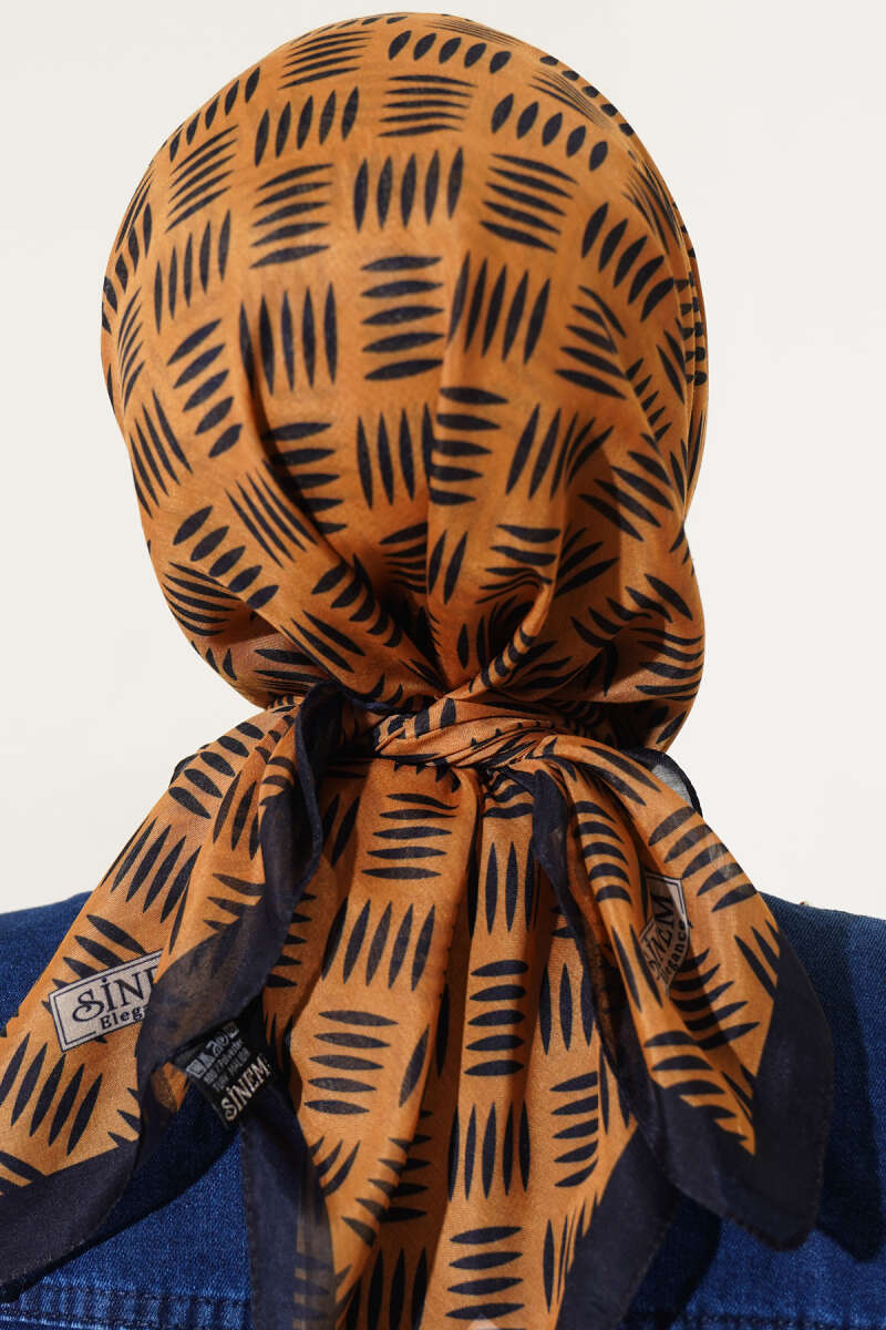 Kibrit Desen Yazma Eşarp Hardal