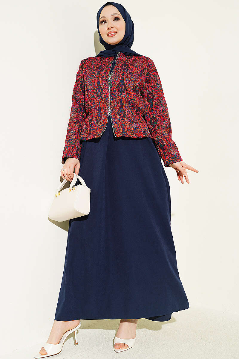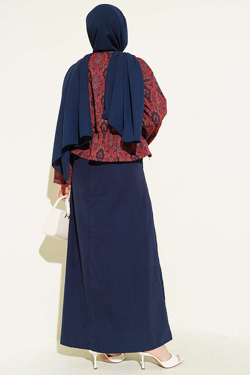 Yandan Bağcıklı Yelekli Etekli Kot Takım Lacivert