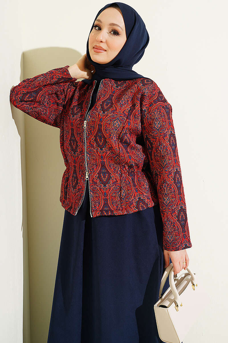 Yandan Bağcıklı Yelekli Etekli Kot Takım Acı Kahve
