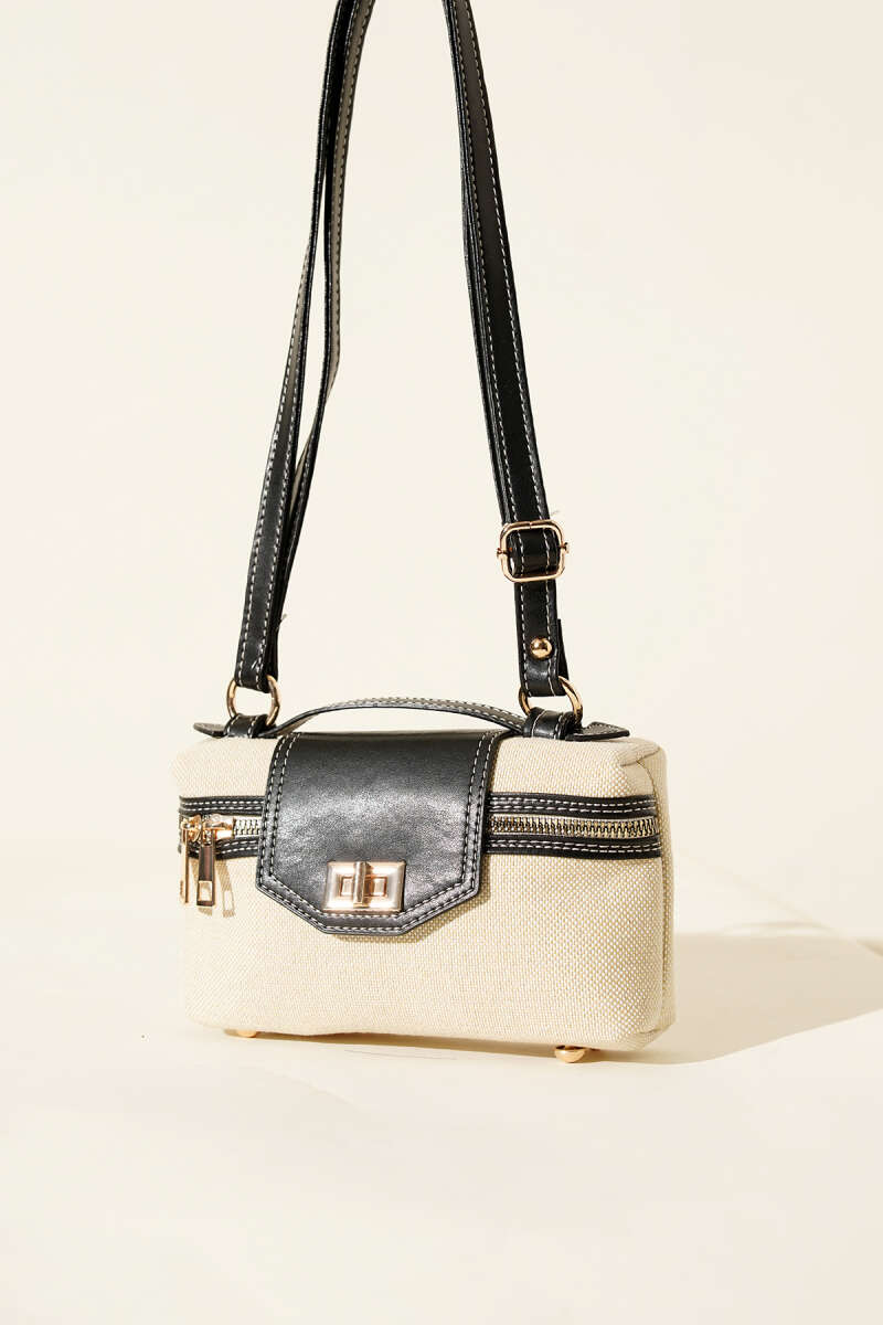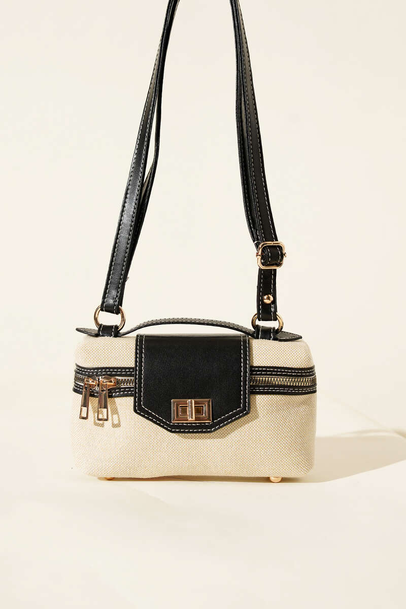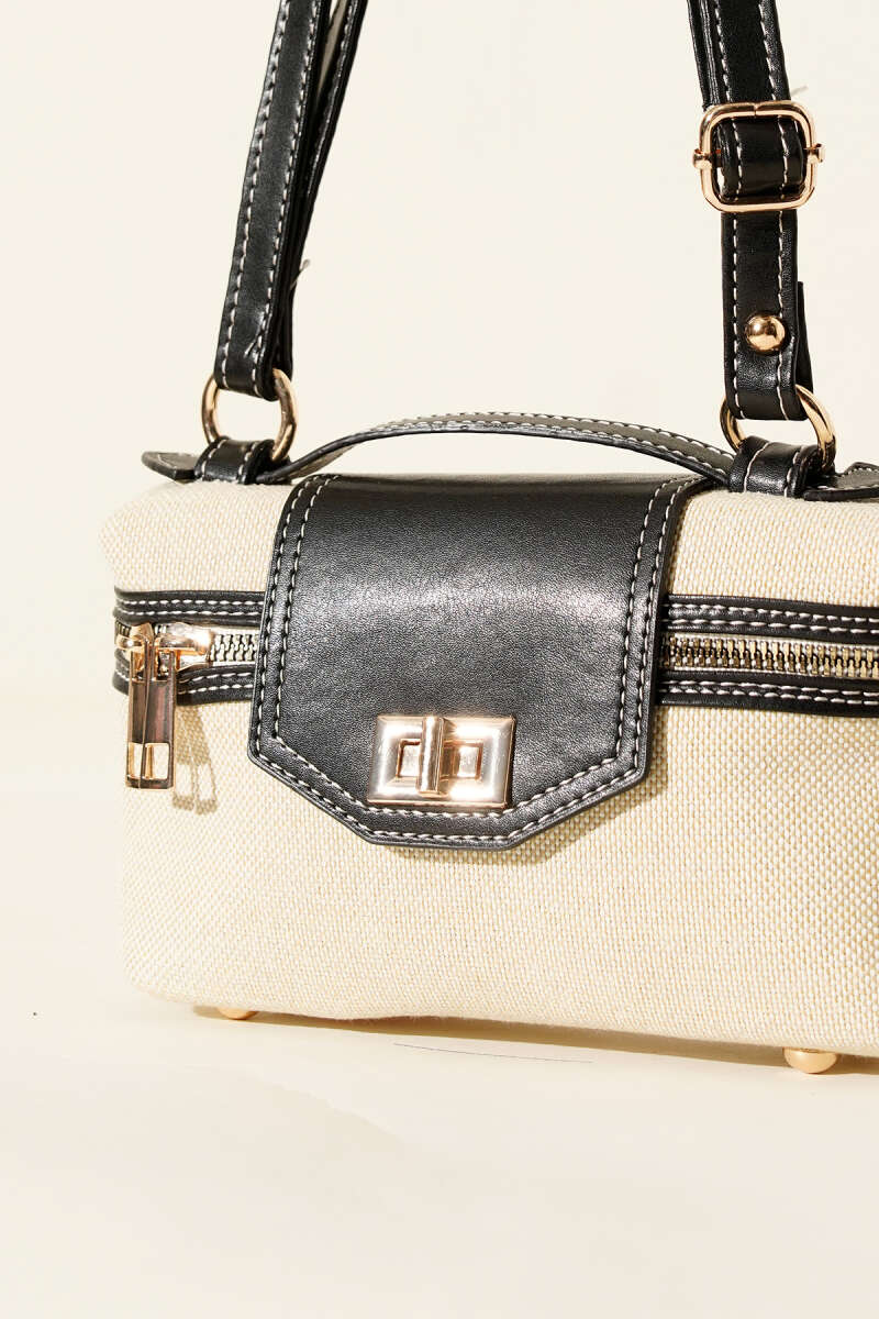 Şeritli Ayıcık Aksesuarlı Omuz Çantası Siyah Taba