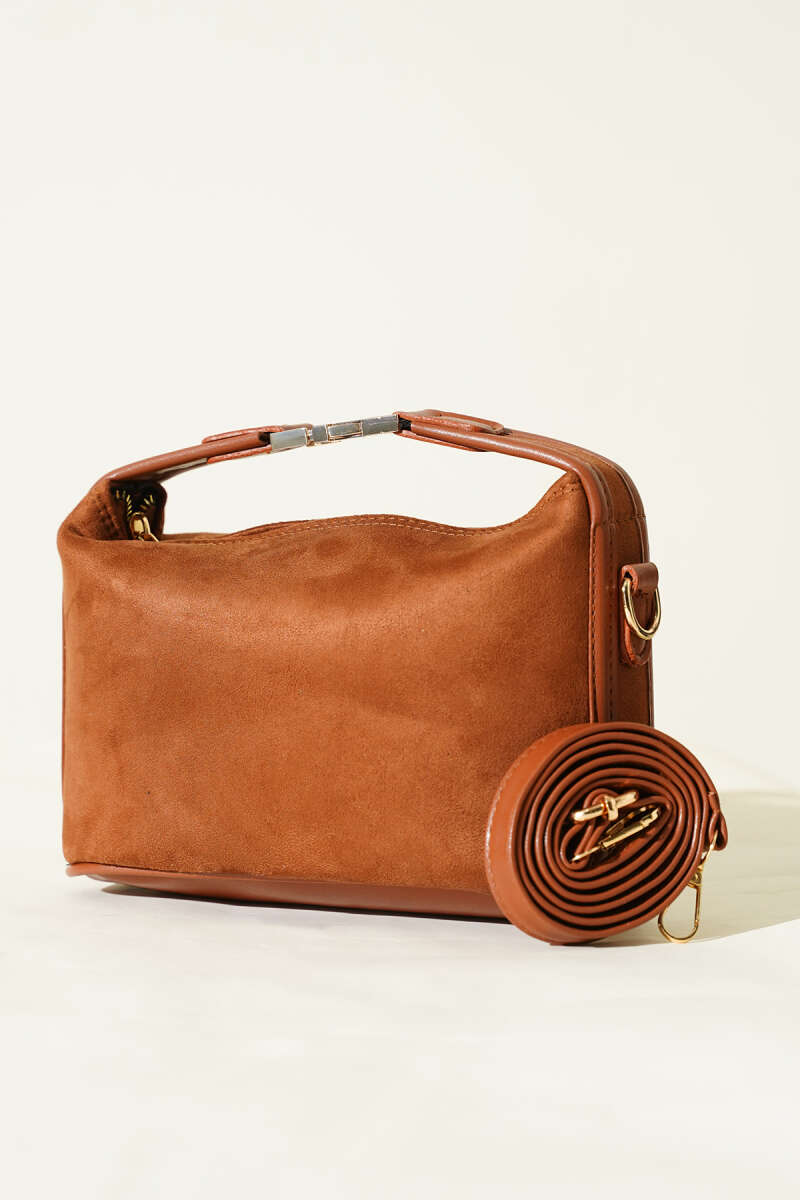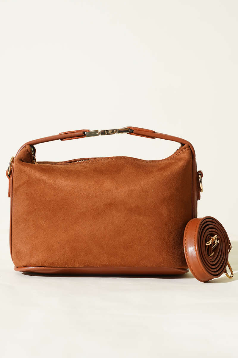 Kilit Sap Detaylı Süet Çanta Acı Kahve
