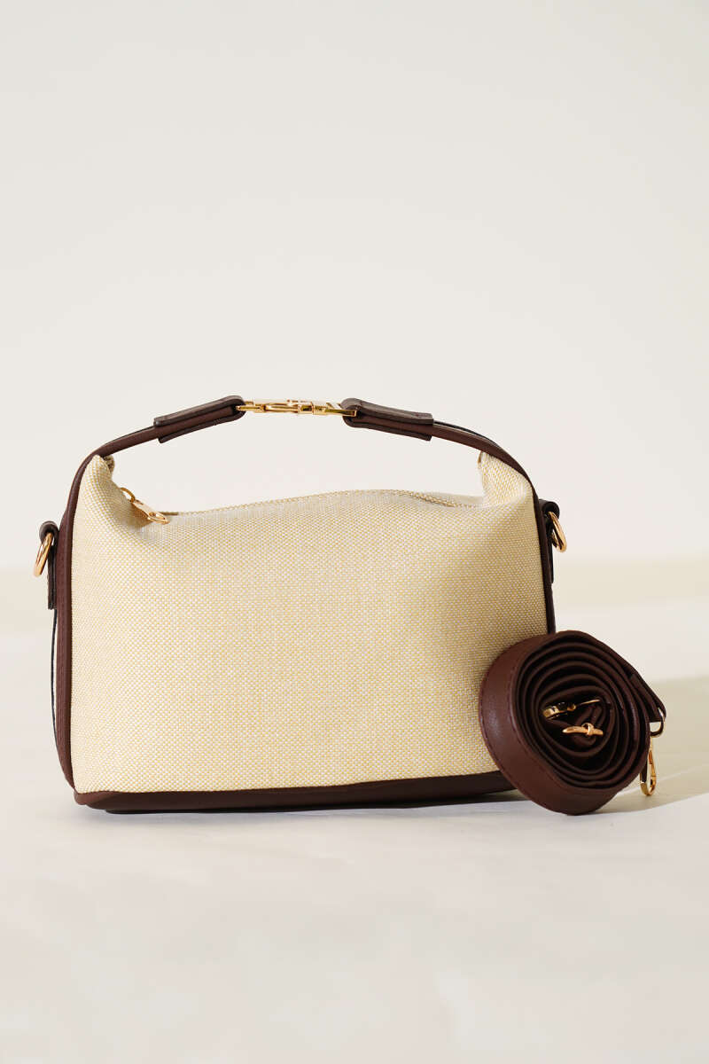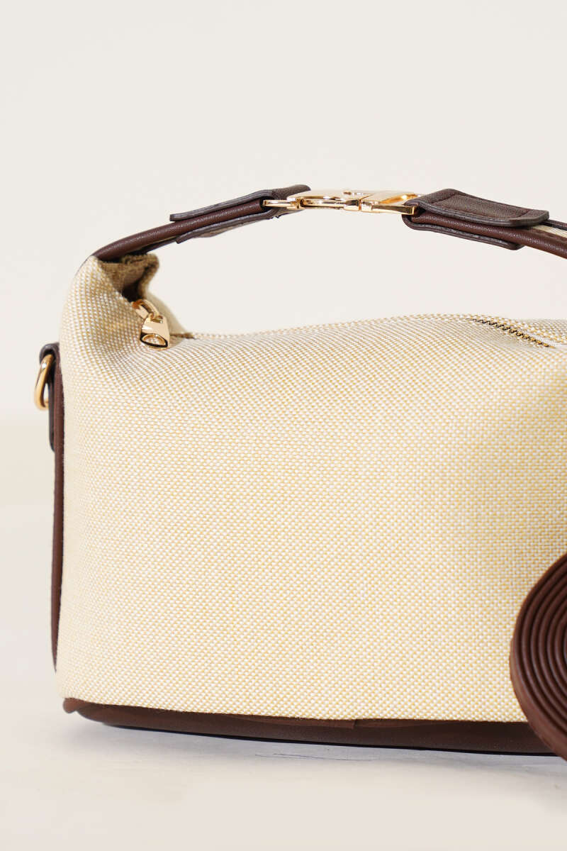Kilit Saplı Kanvas Çanta Acı Kahve