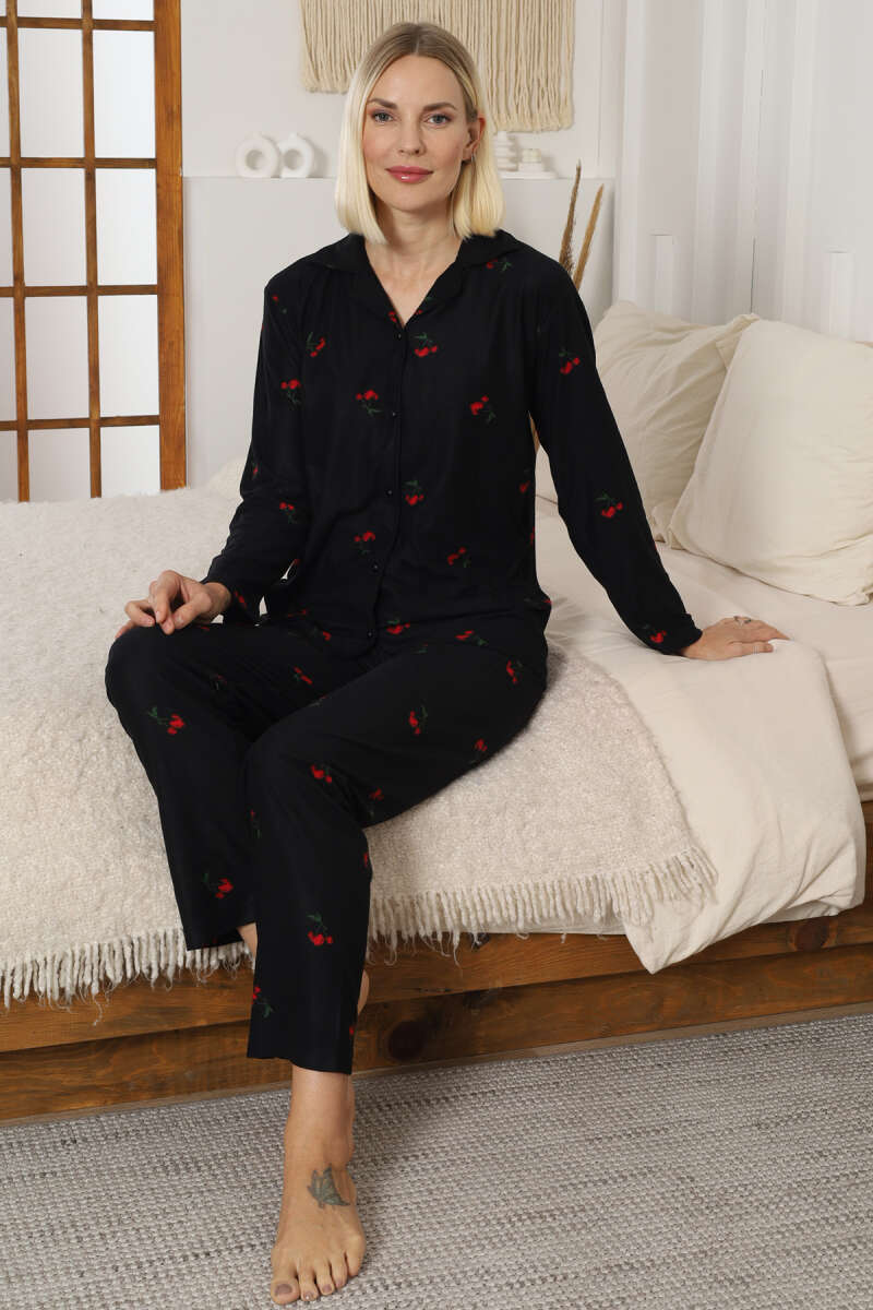 Gömlek Yaka Düğmeli Pijama Takımı Lacivert