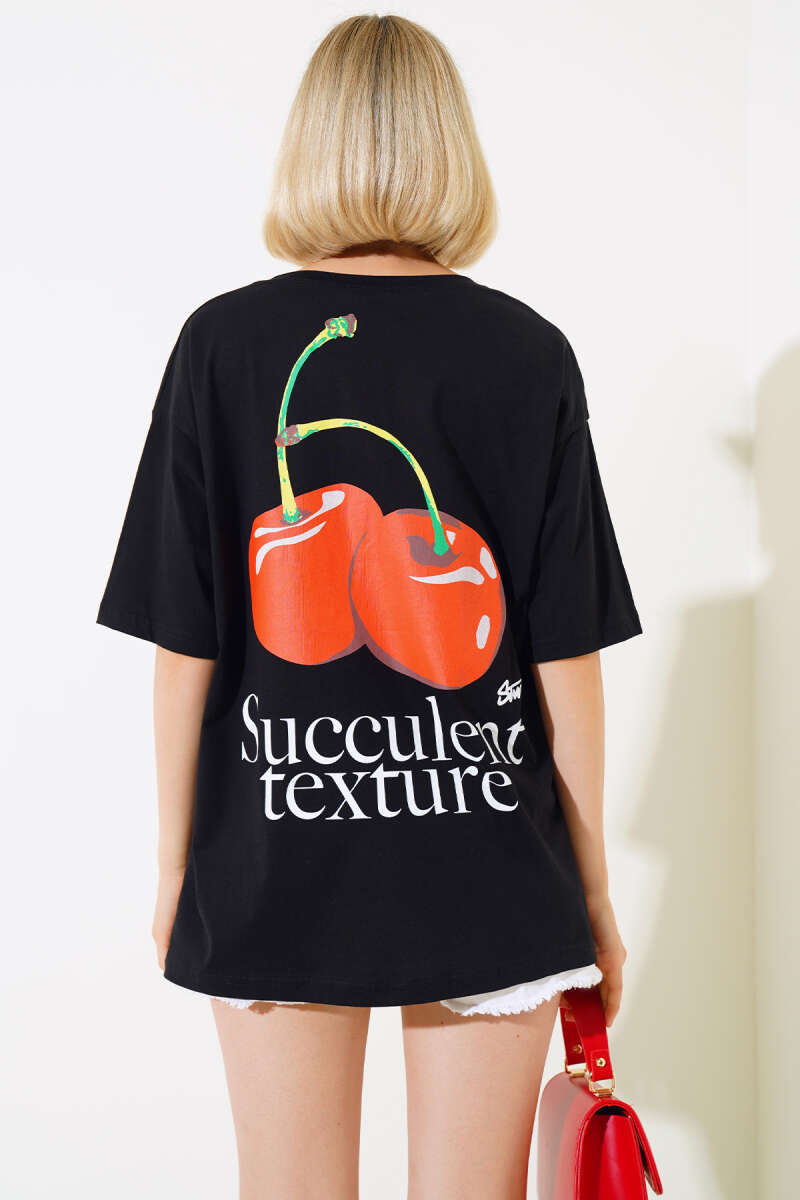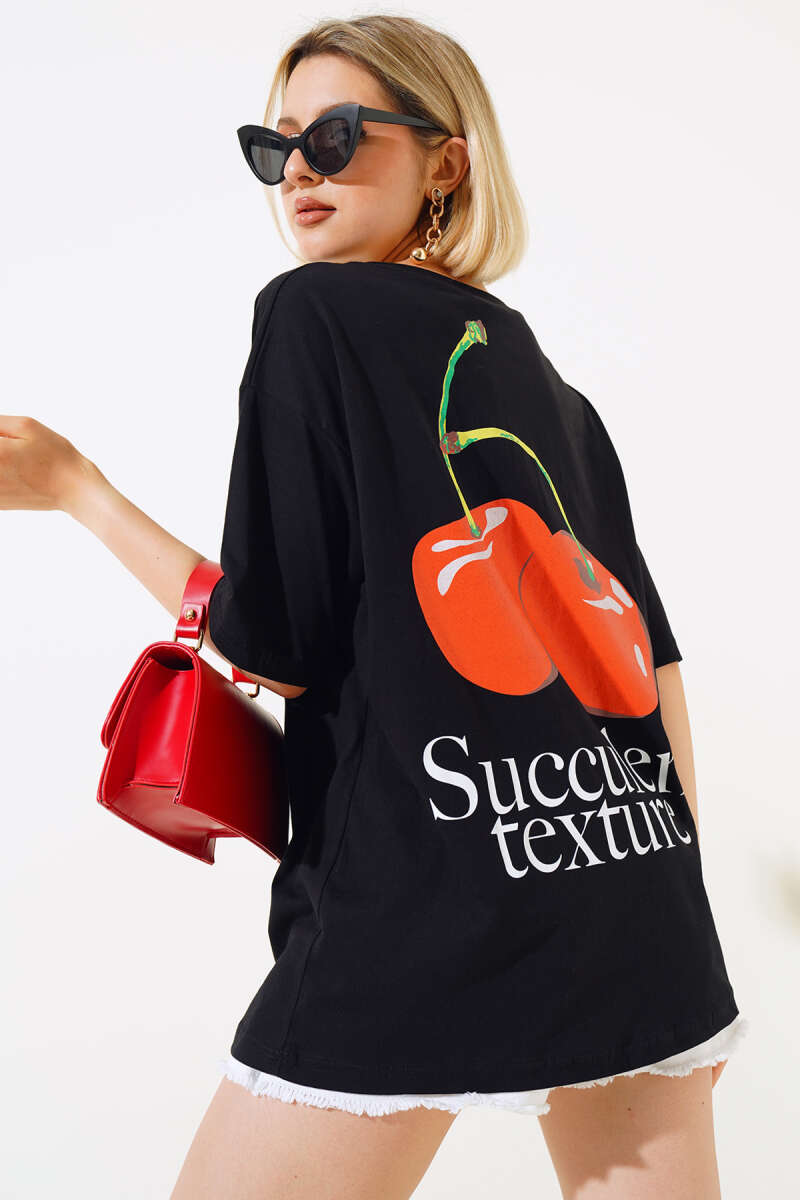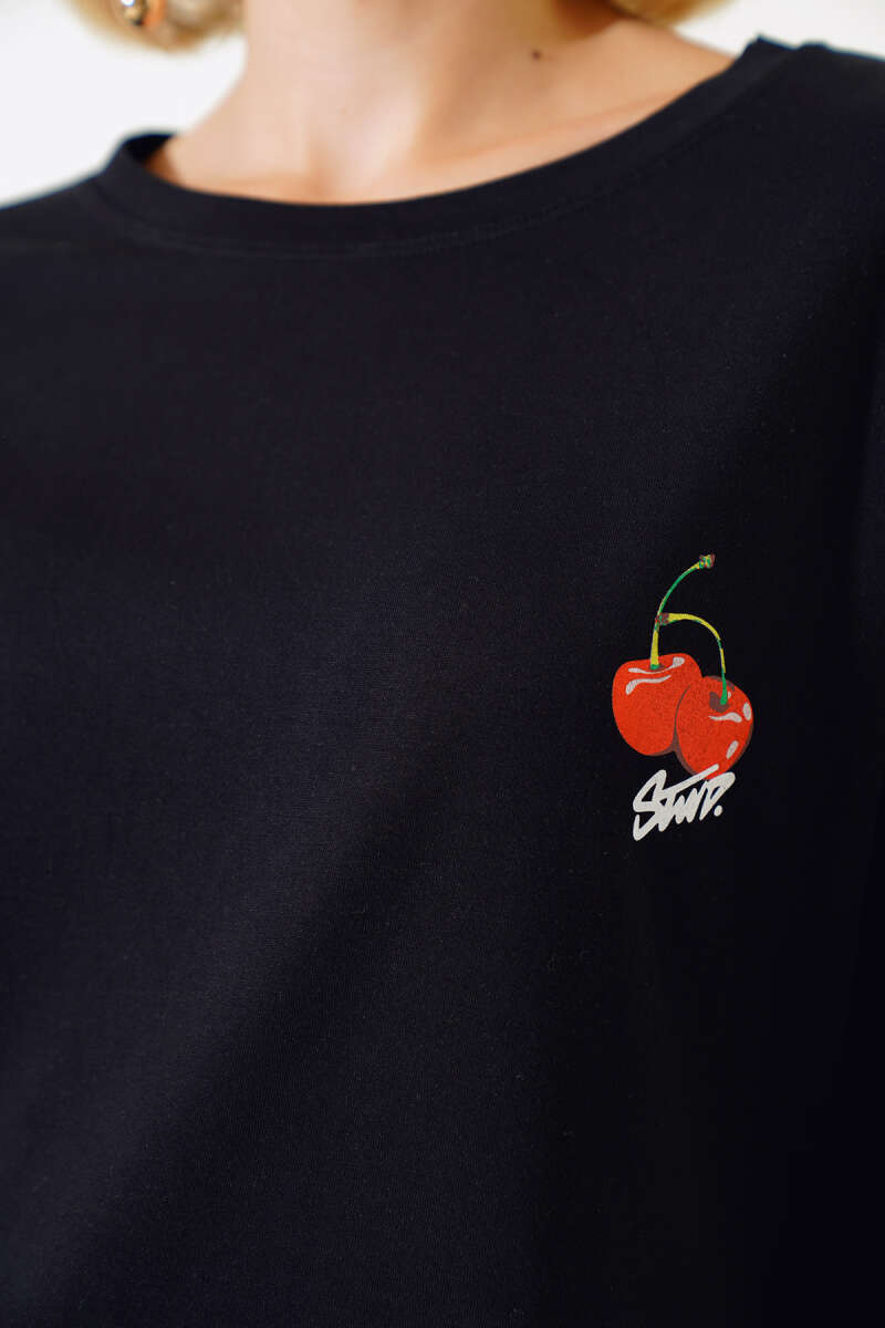 Limon Nakışlı Üç İplik Sweatshirt Siyah