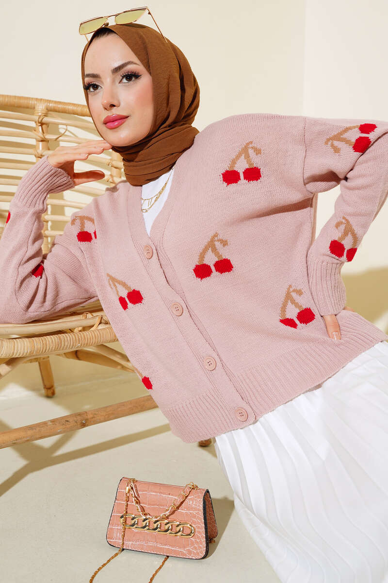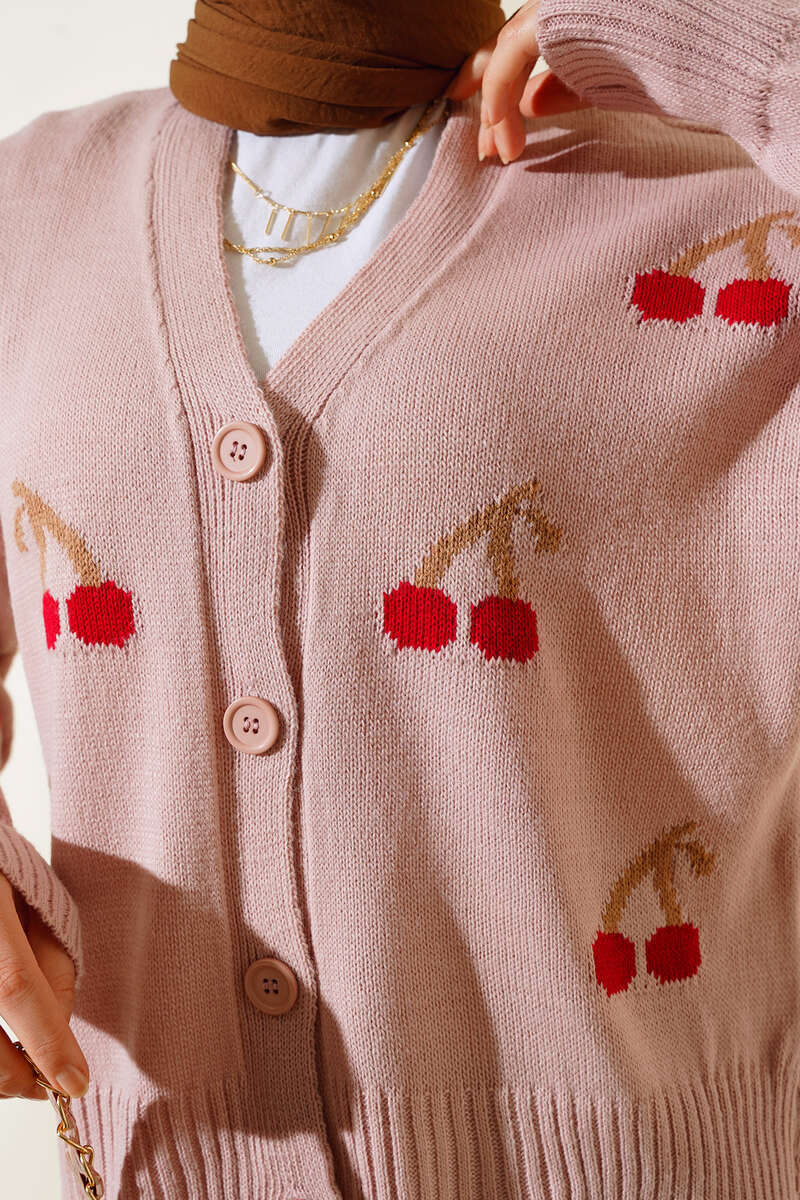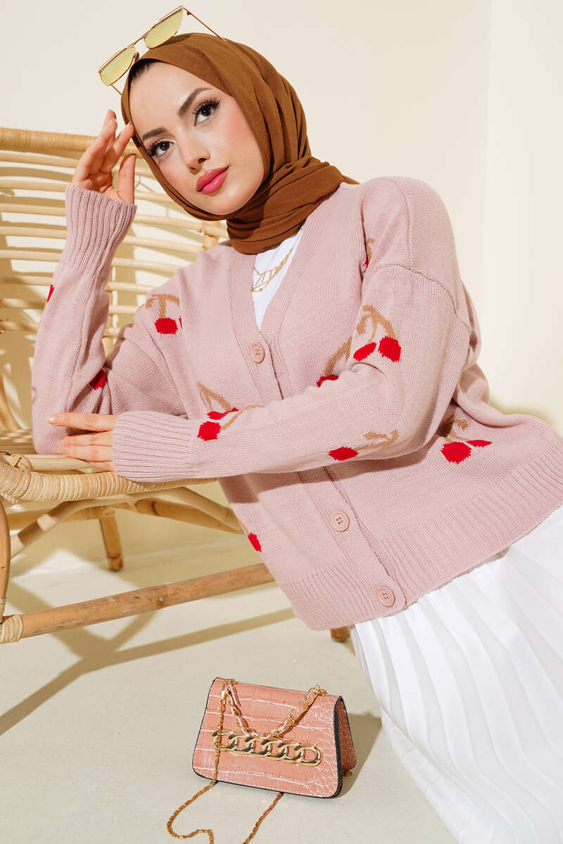 Sezonun çarpıcı parçası olan hırkamızı çok beğeneceksiniz. Hırkamız kiraz desenlidir. Kısa modeldir. Hırkamızın önü düğmelidir. Uzun kolludur. Düşük omuzdur. Sade ve sportif tarzıyla kombinlerinizin favori parçası olacaktır.