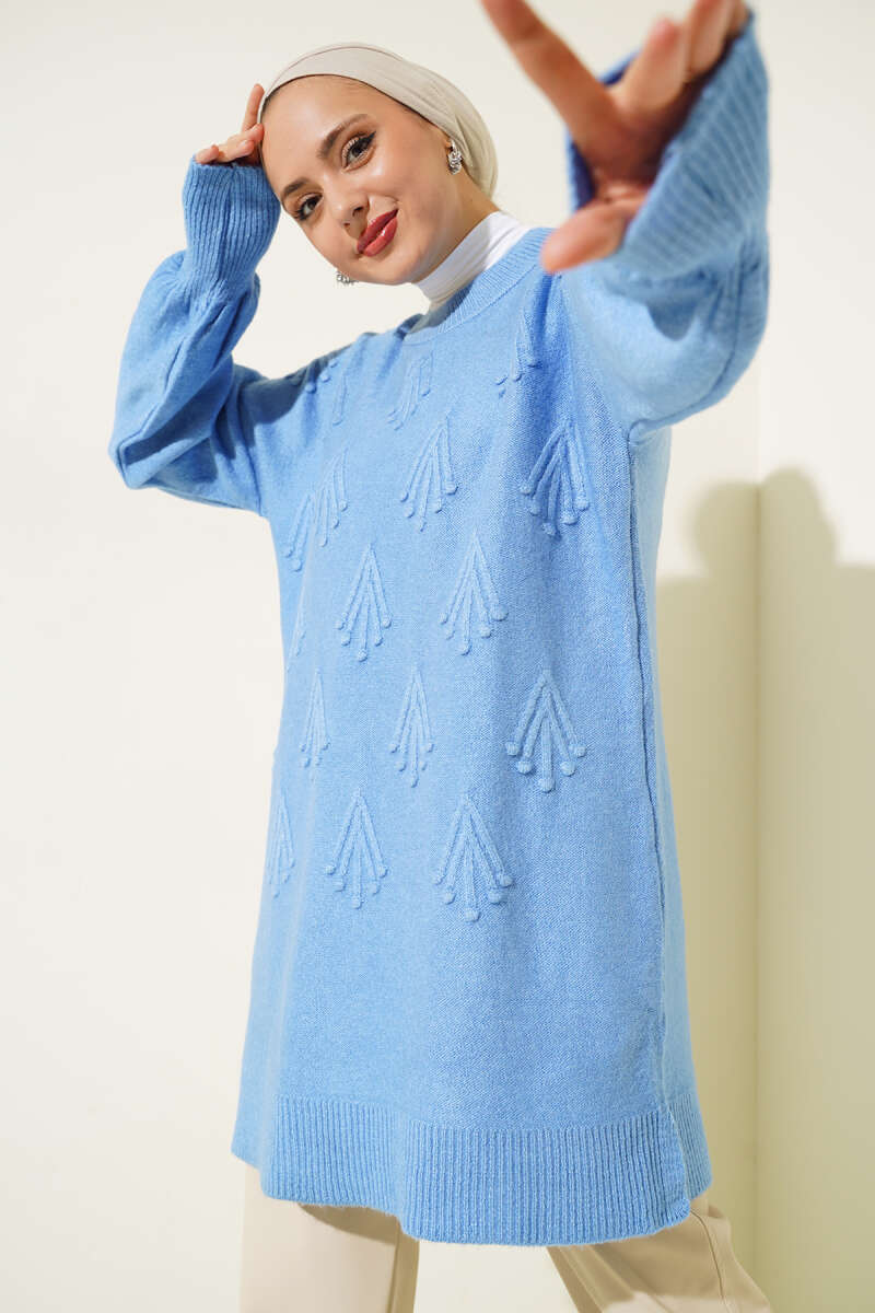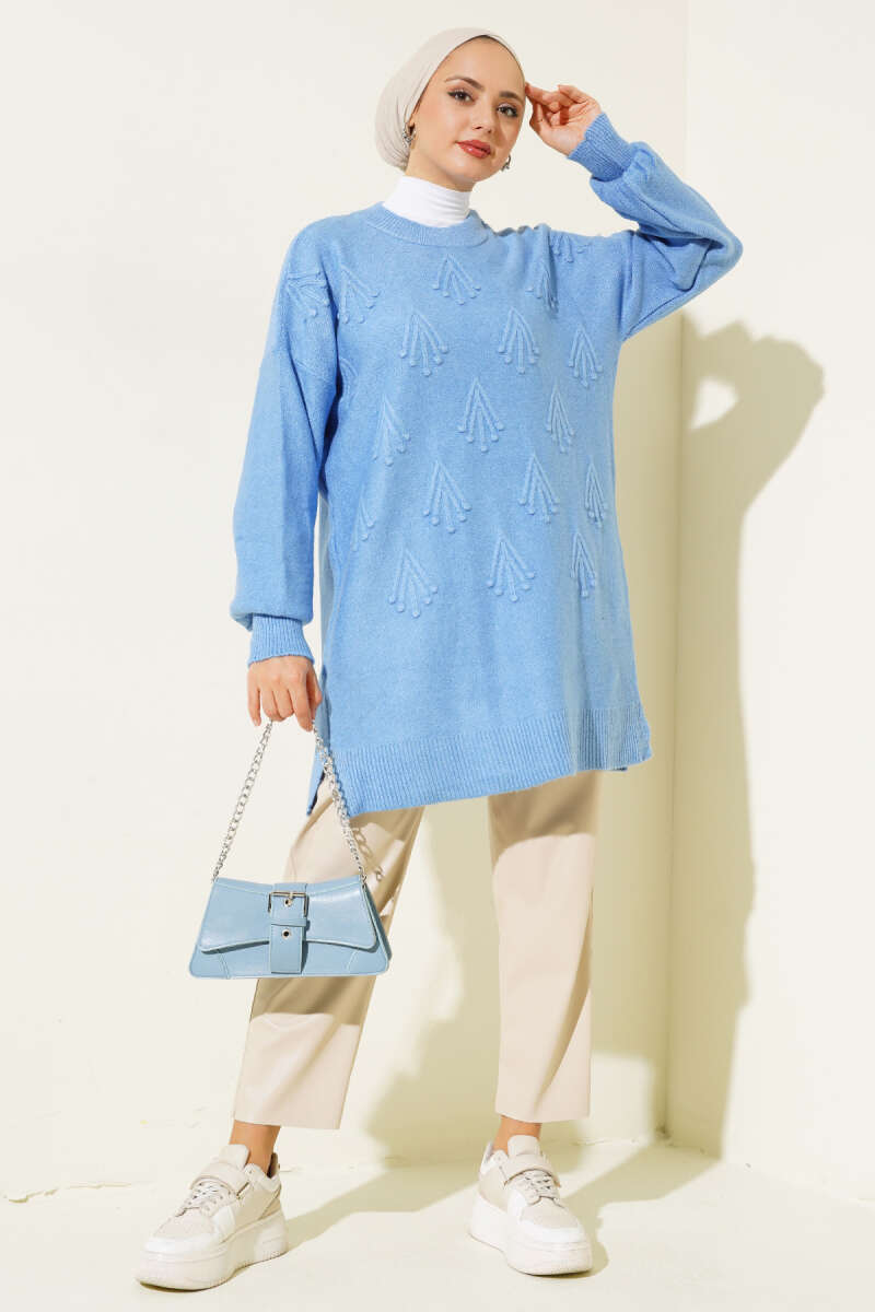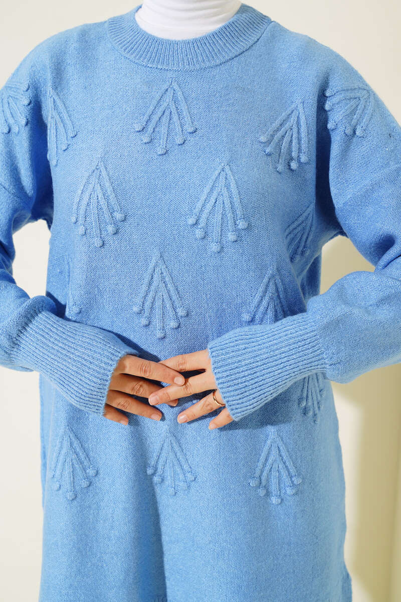 Kiraz Kabartmalı Yumoş Triko Tunik Saks