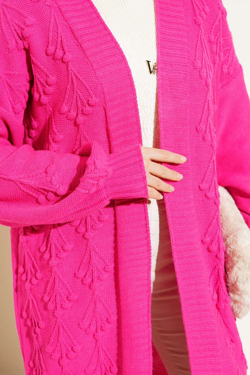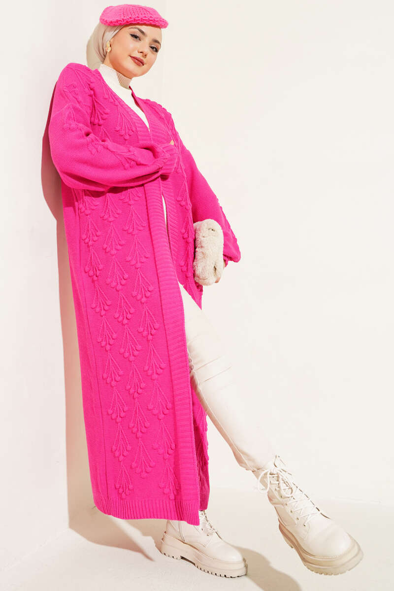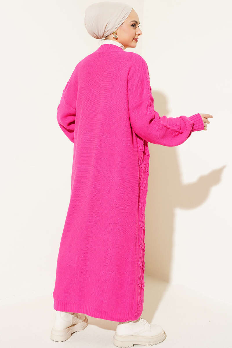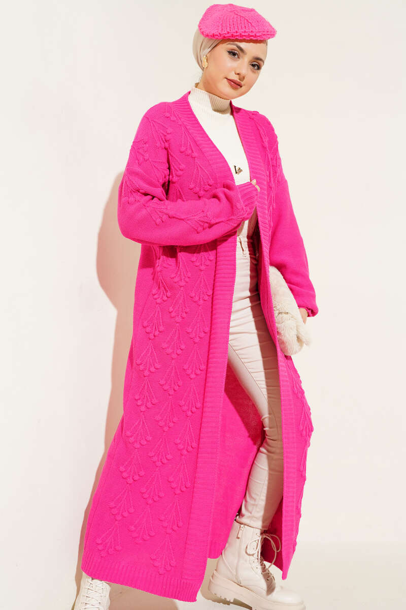 Düğmeli Uzun Merserize Hırka Mürdüm