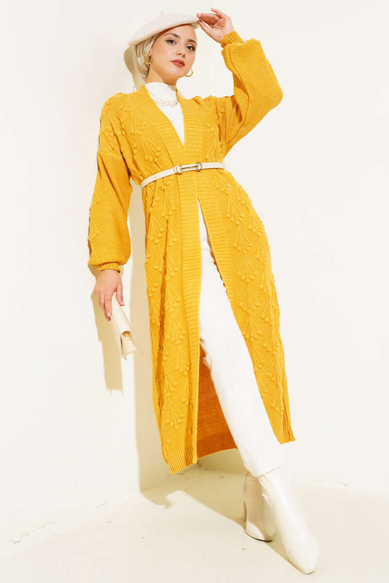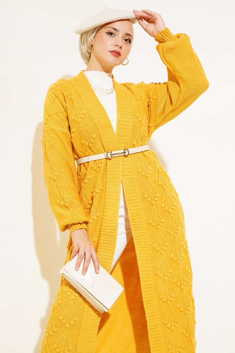 Düğmeli Uzun Merserize Hırka Mürdüm
