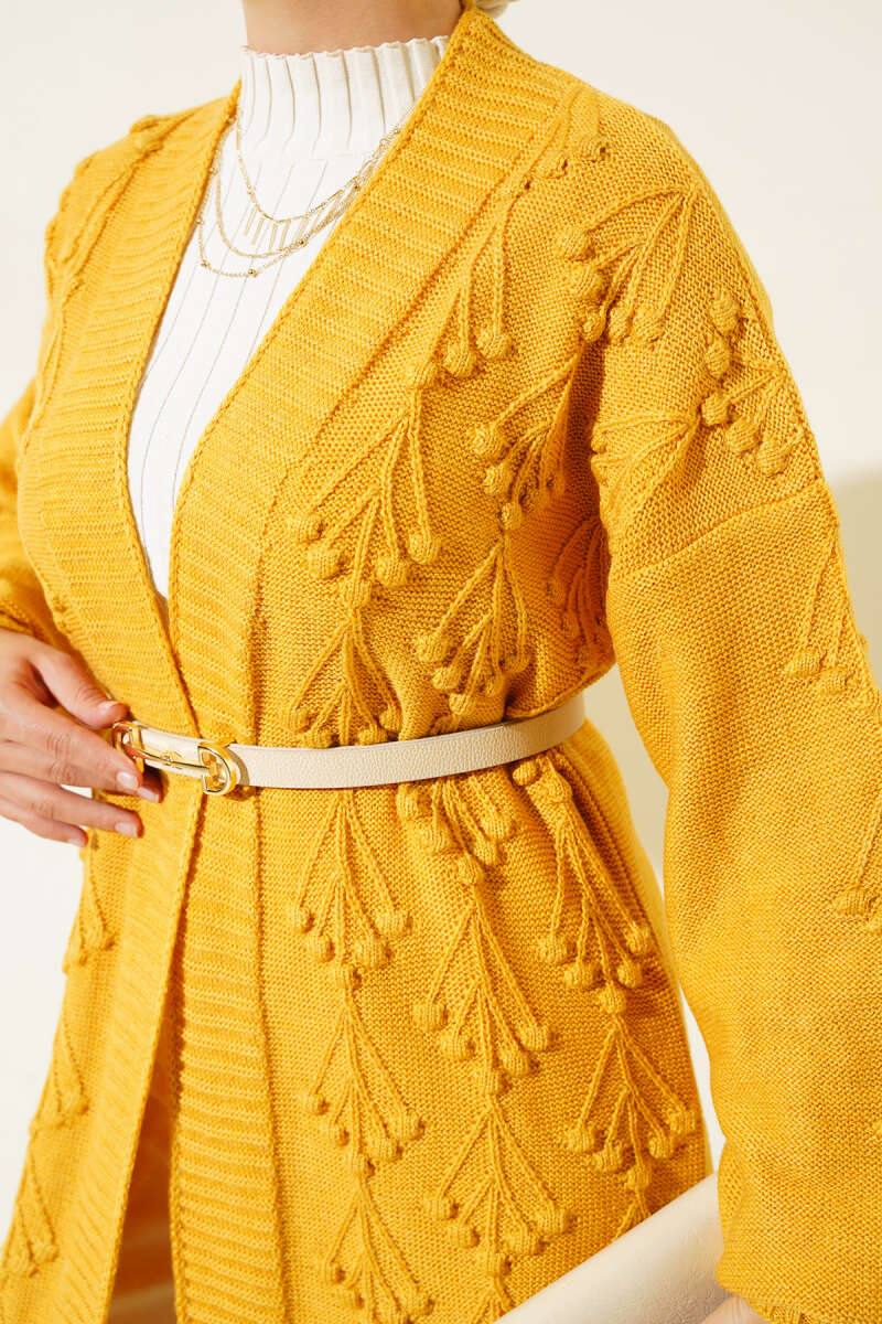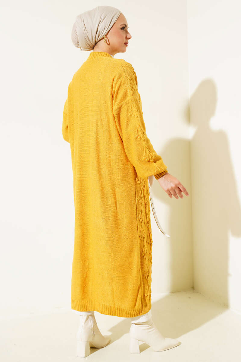 Düğmeli Uzun Merserize Hırka Zümrüt