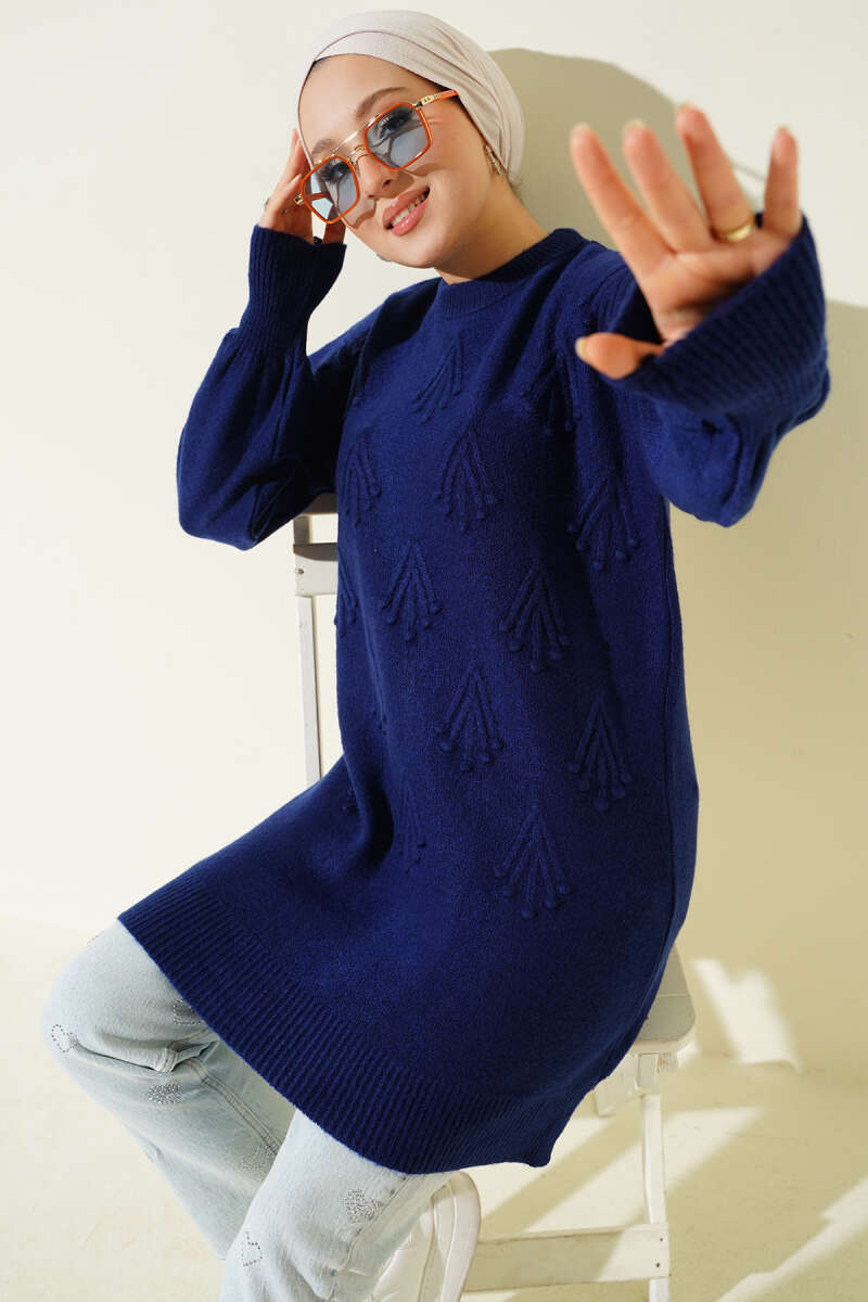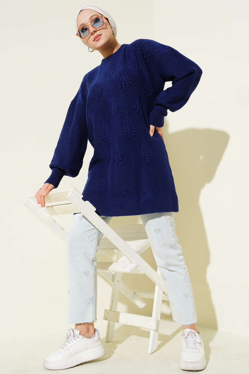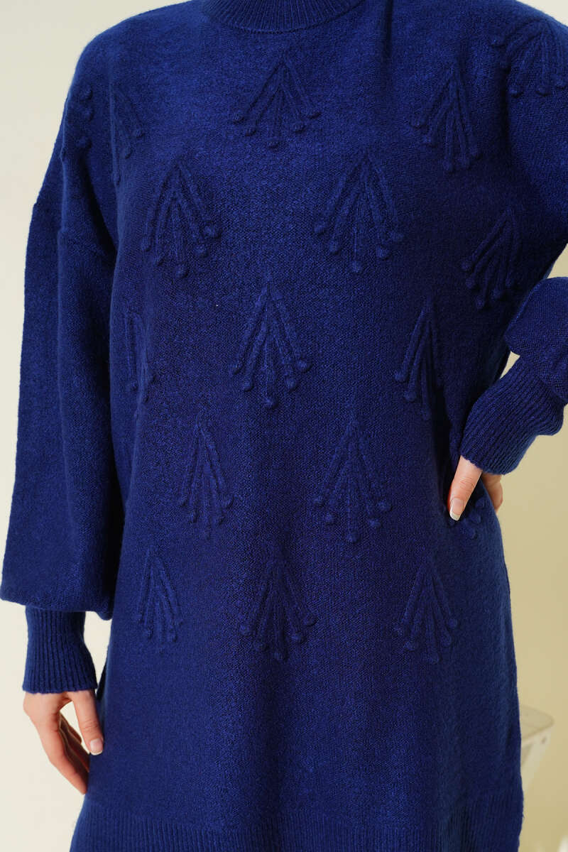 Çizgi Baklava Desen Triko Tunik Gül Kurusu