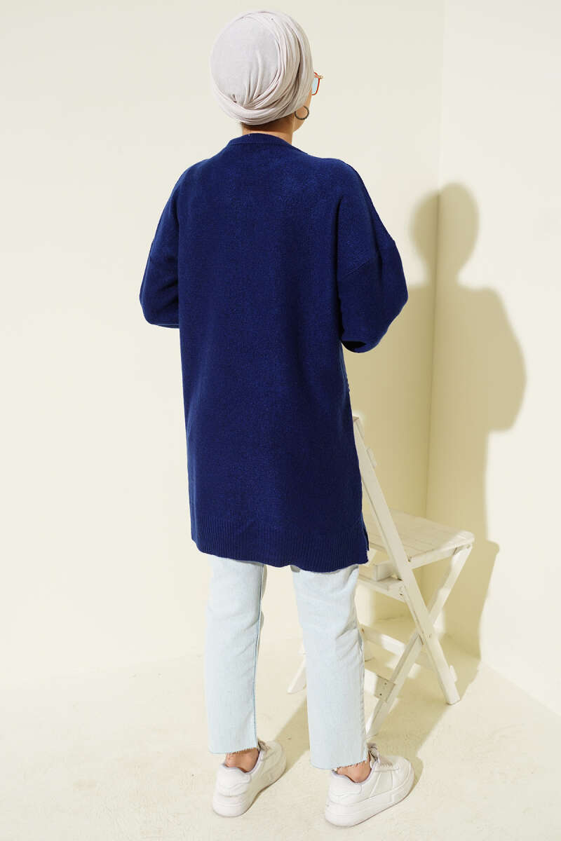 Düğme Detaylı V Yaka Triko Hırka Yağ Yeşili