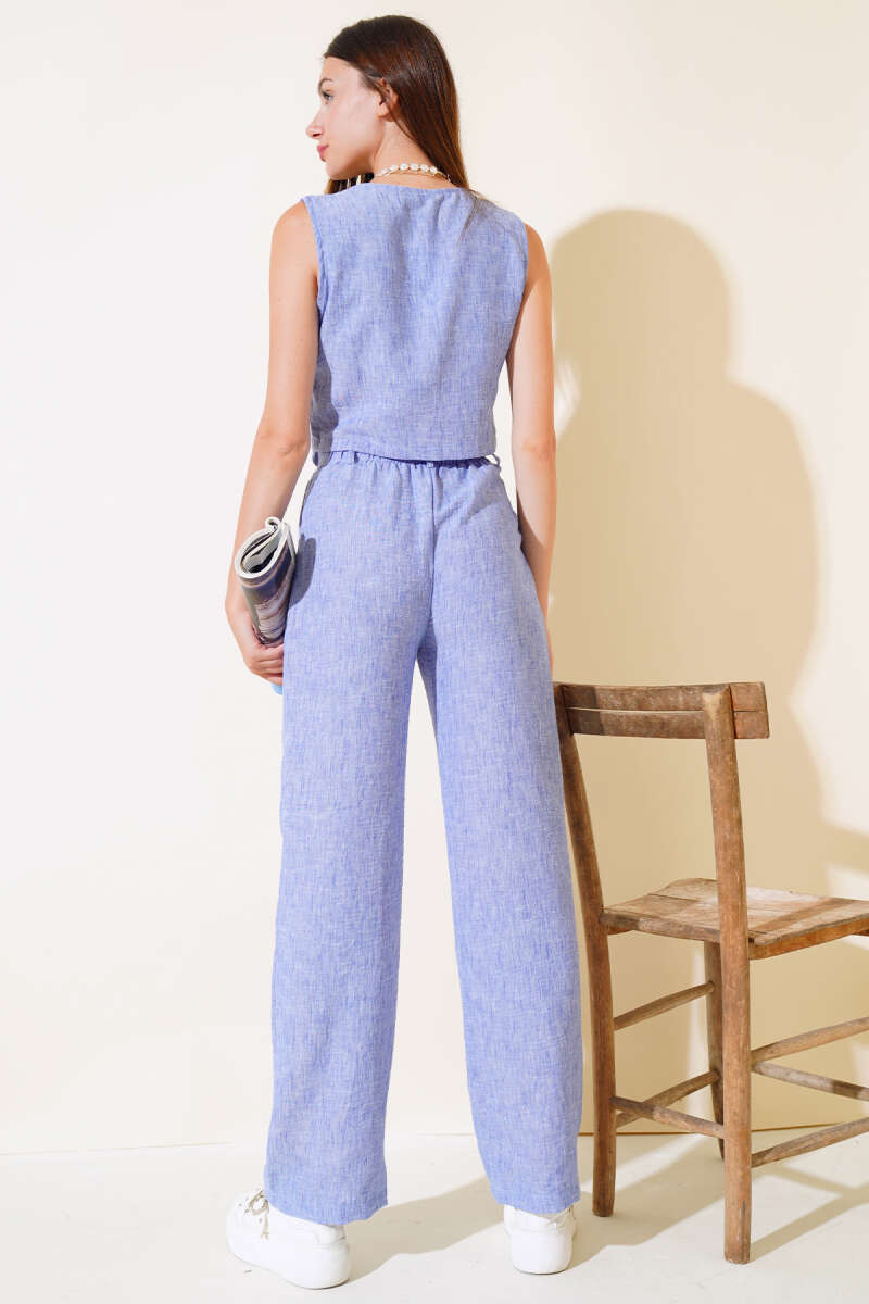 Kabartma Şeritli Taşlı Triko İkili Takım Nefti