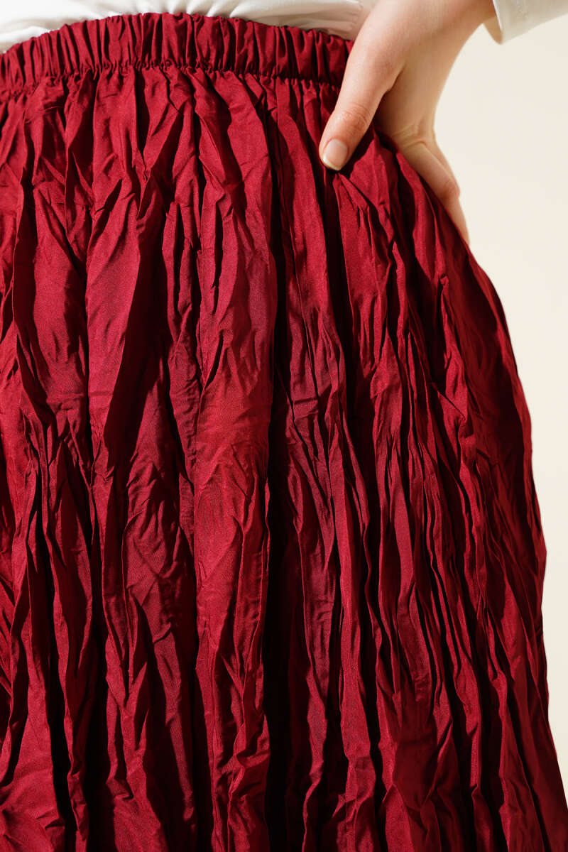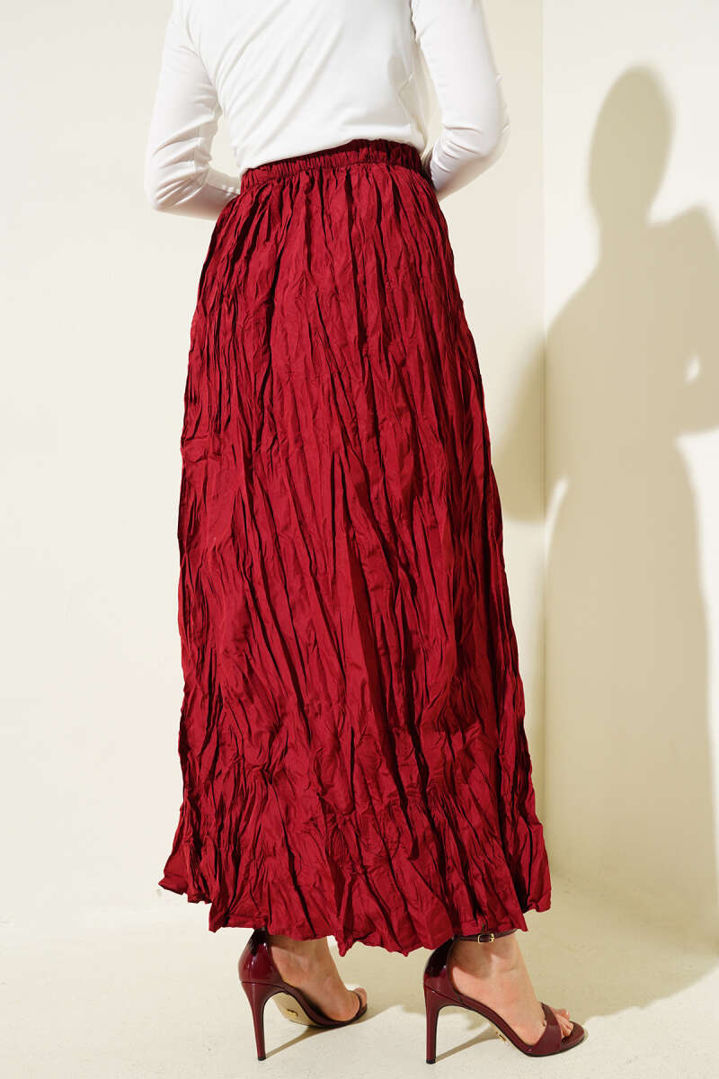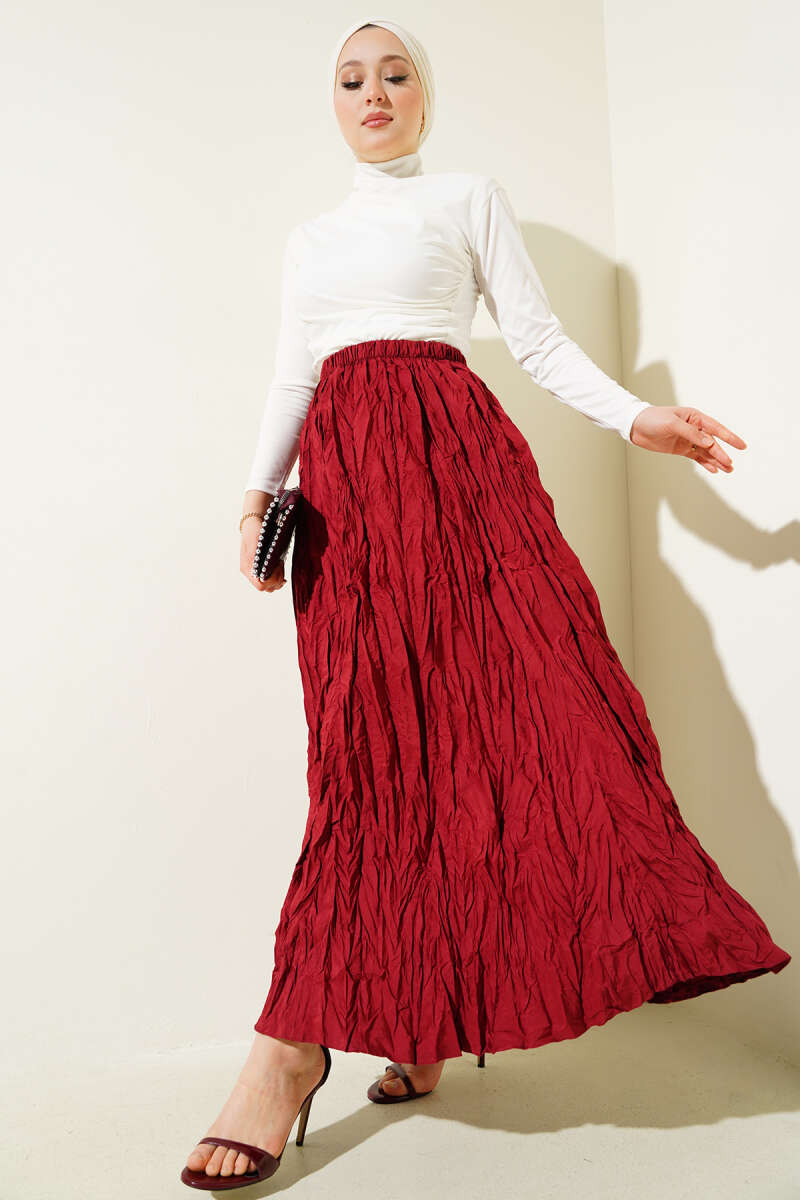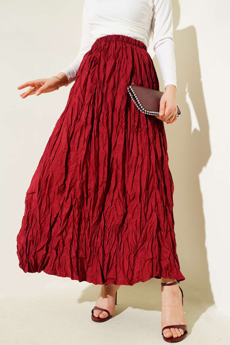 Beli Lastik Detaylı Kloş Scuba Etek Bordo