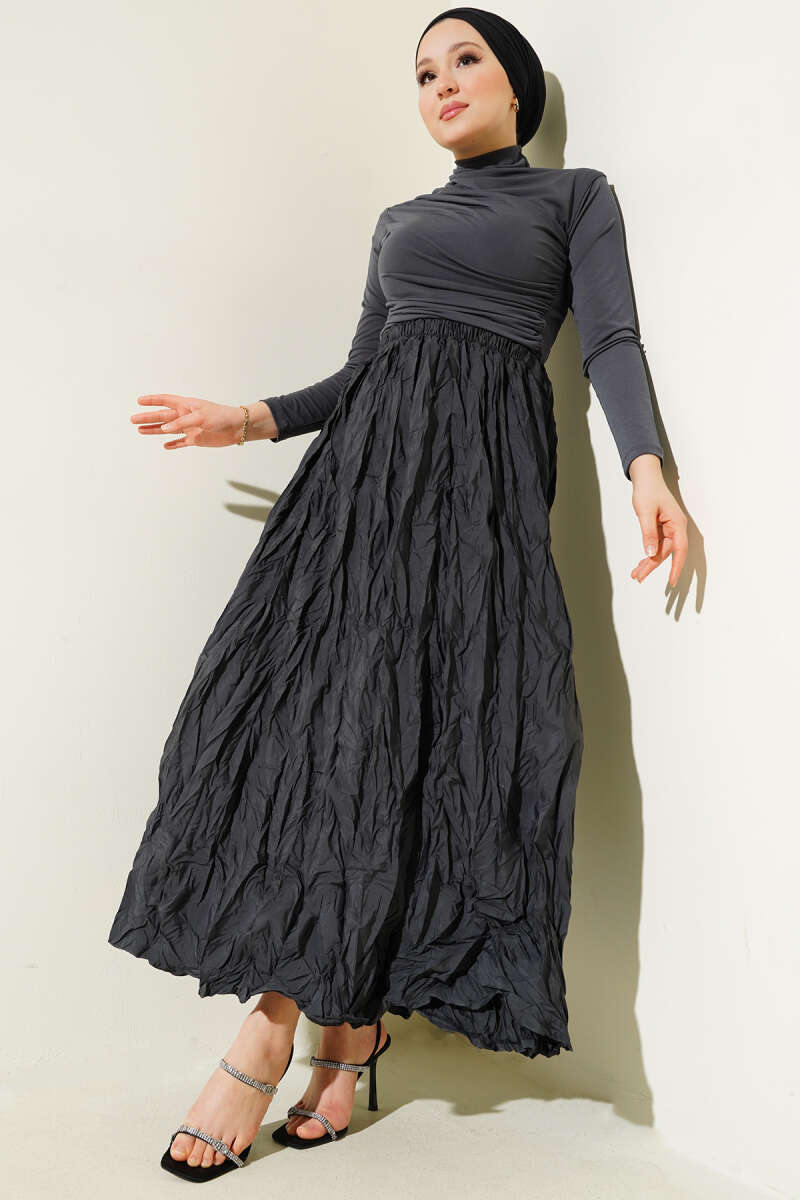 Beli Kemerli Lastikli Pileli Etek Kiremit