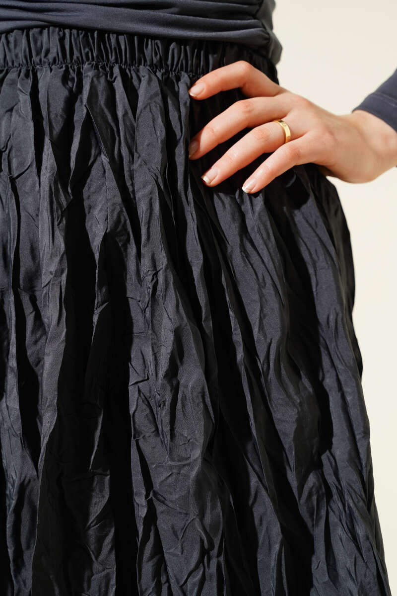 Beli Lastik Detaylı Kloş Scuba Etek Siyah
