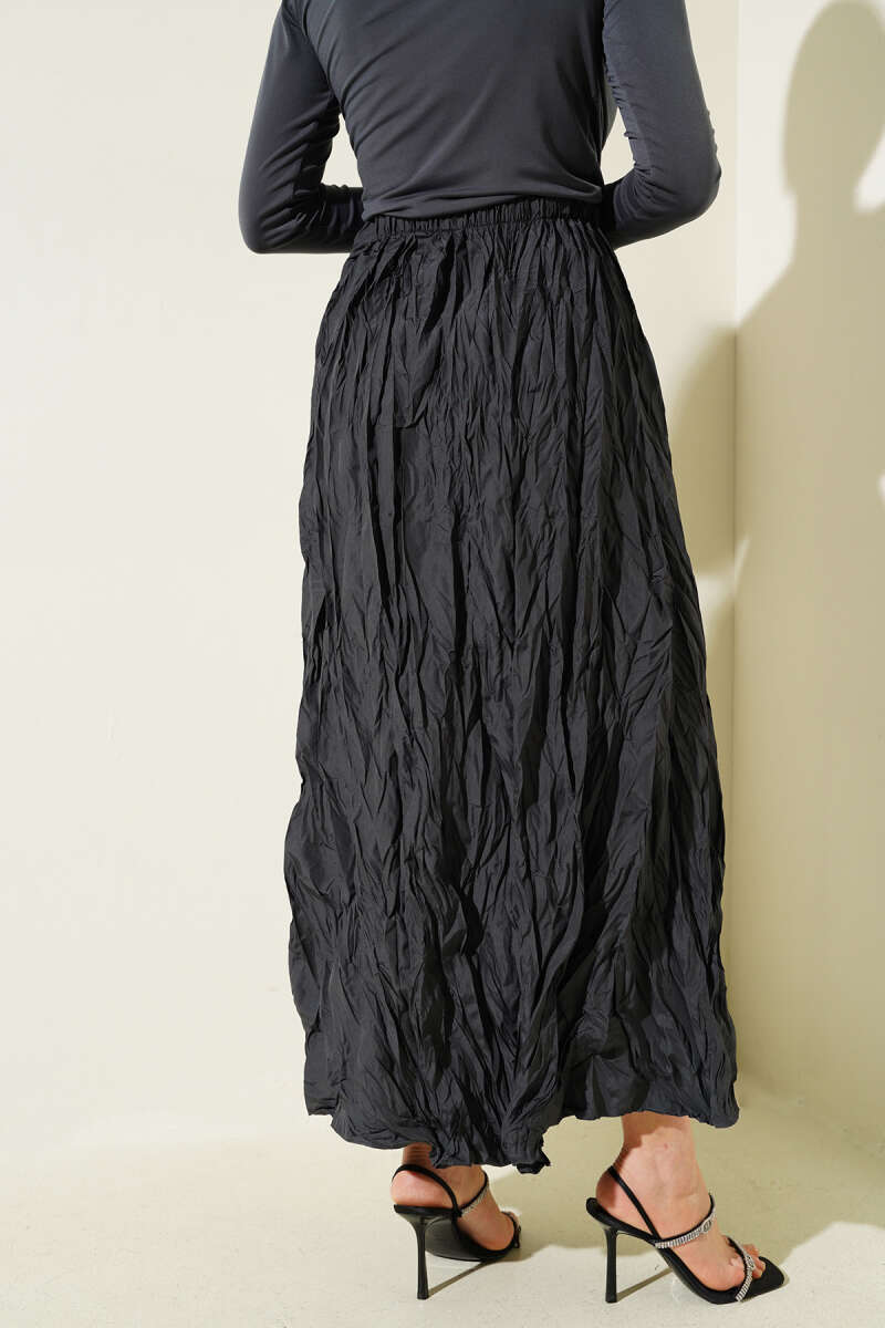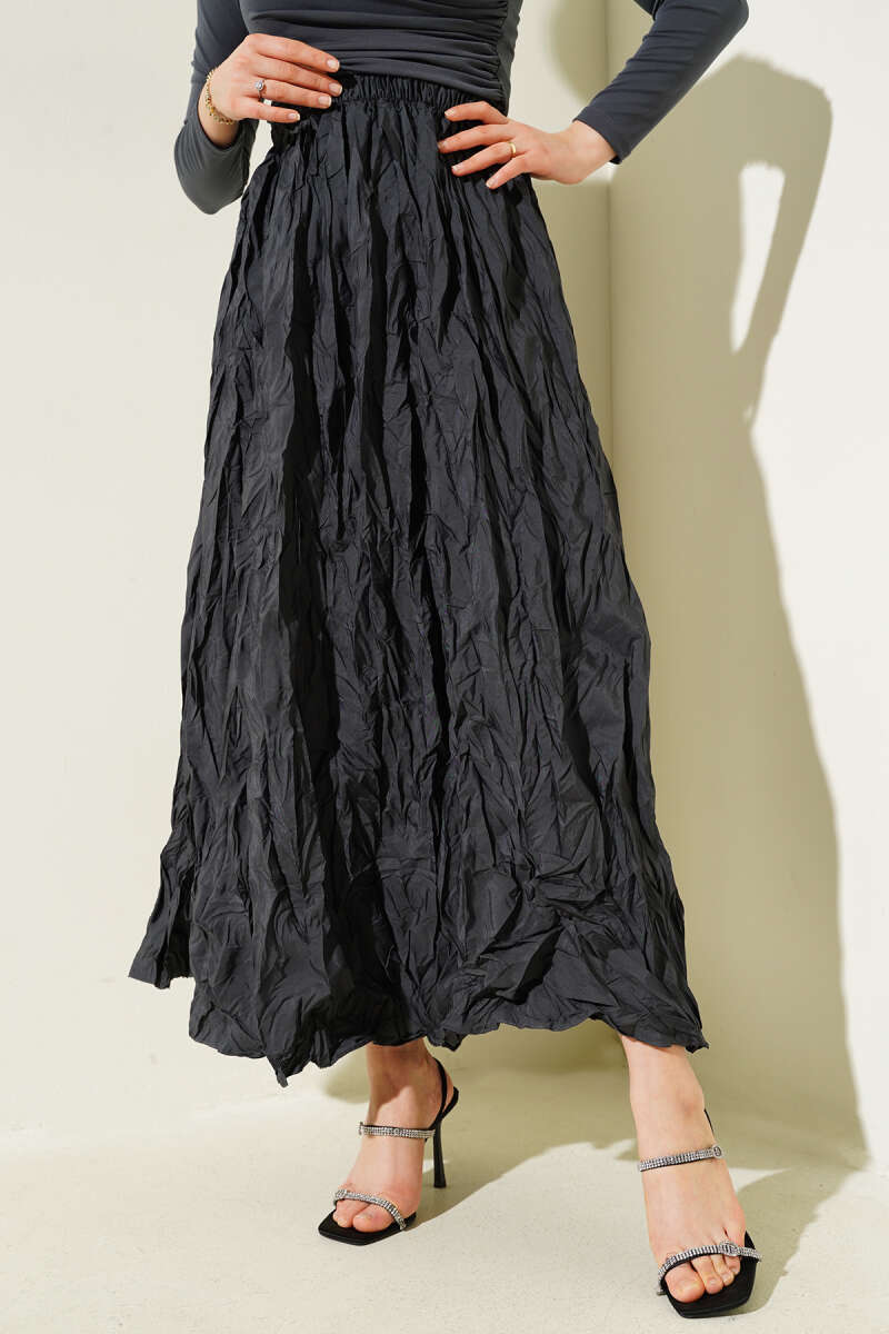 Beli Kemerli Lastikli Pileli Etek Siyah