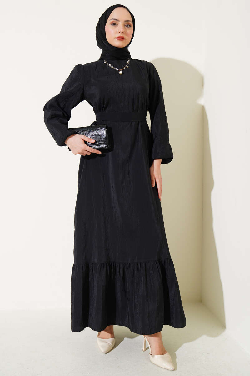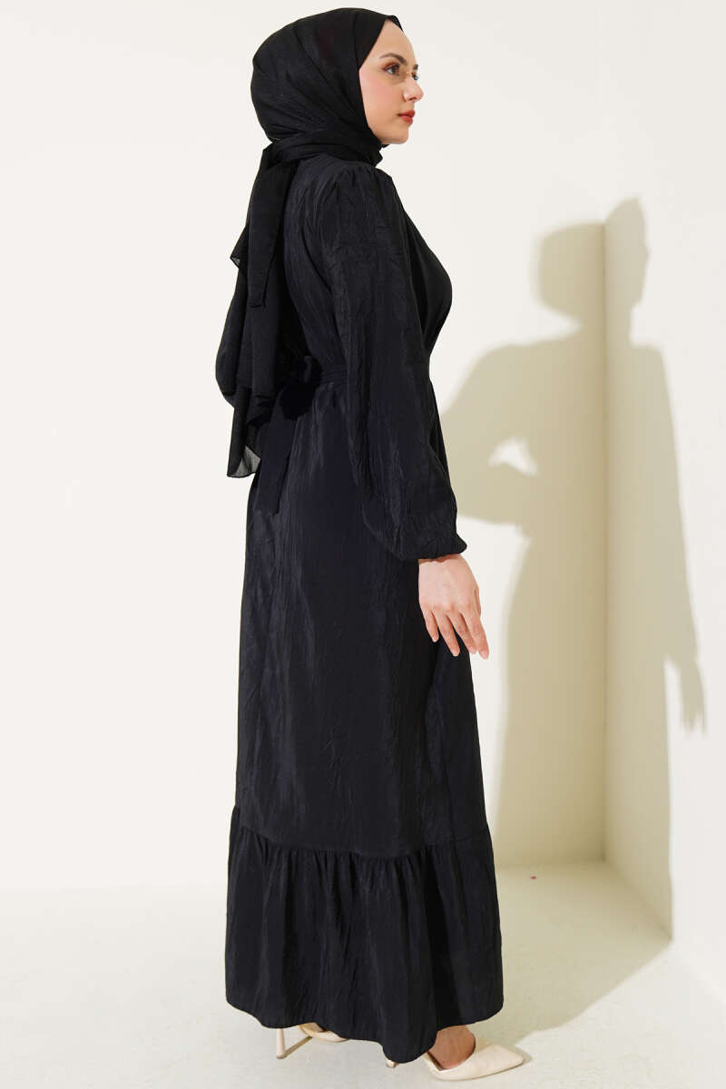 Bel Taşlı Pelerinli Abiye Elbise Siyah