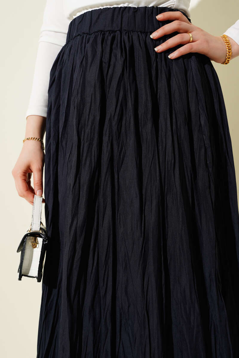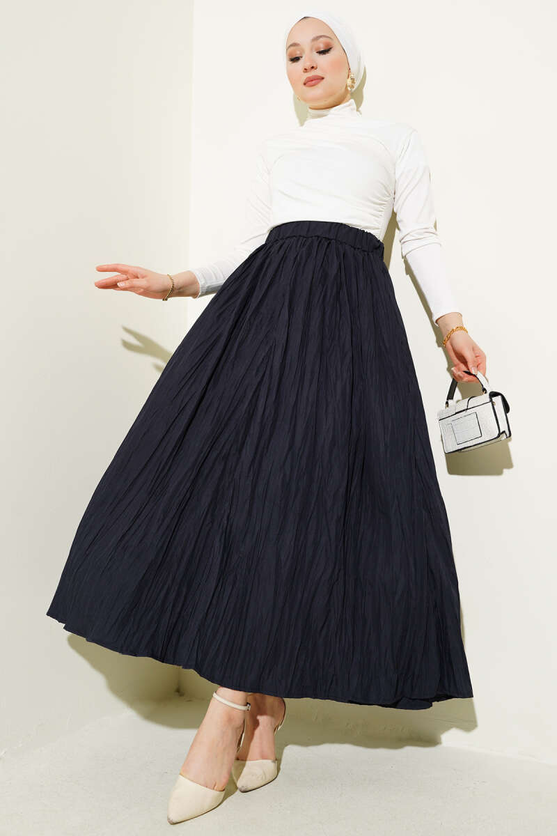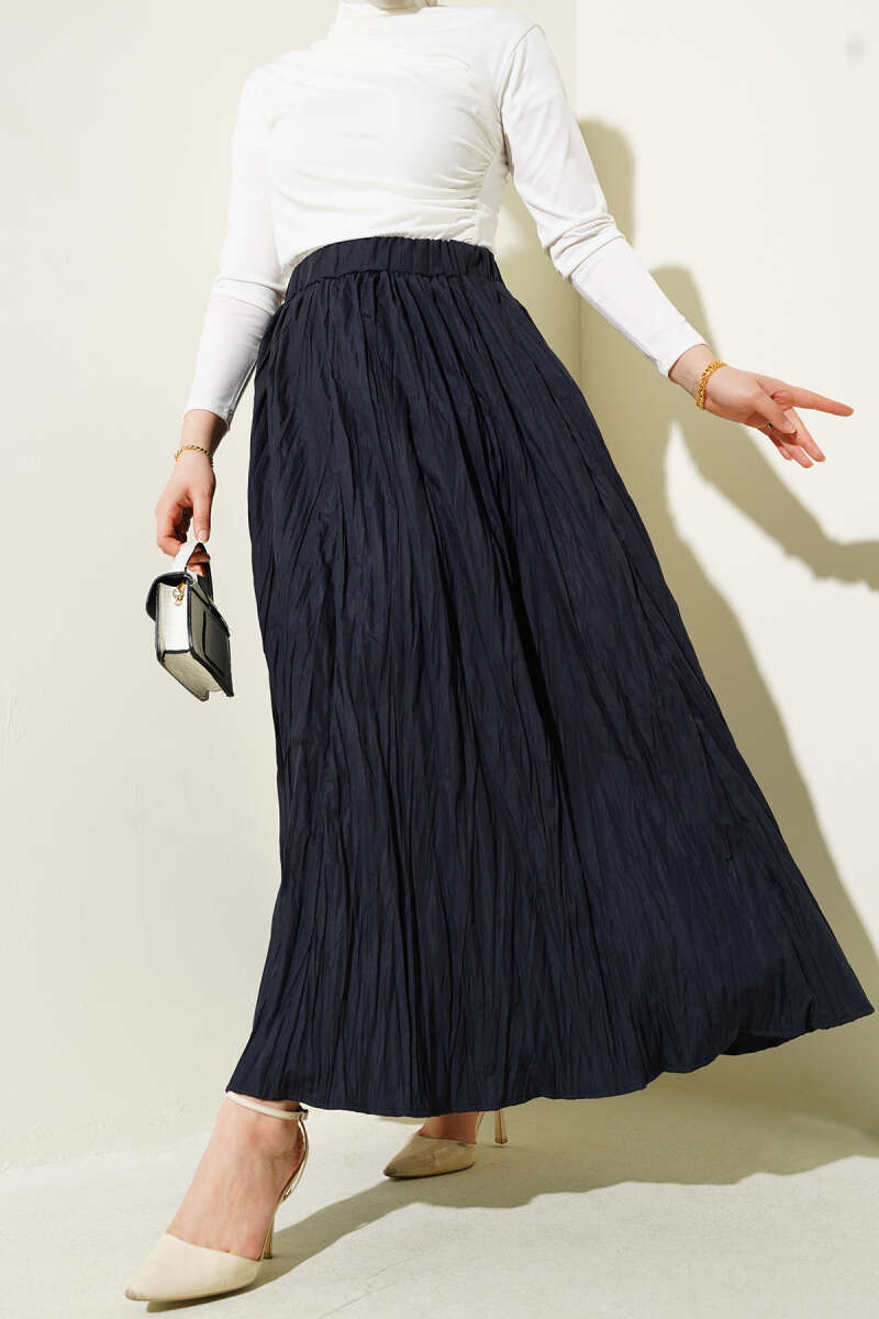 Kemer Aksesuarlı Ekoseli Etek Lacivert