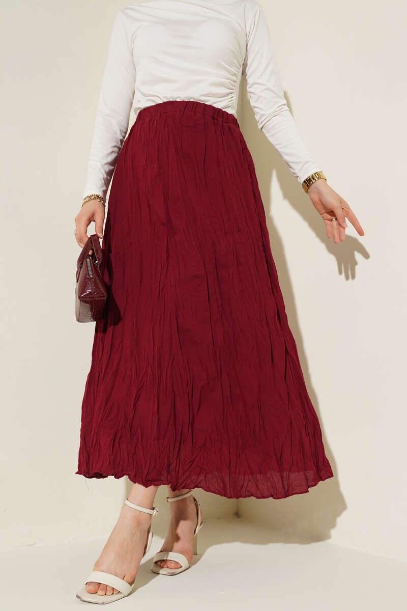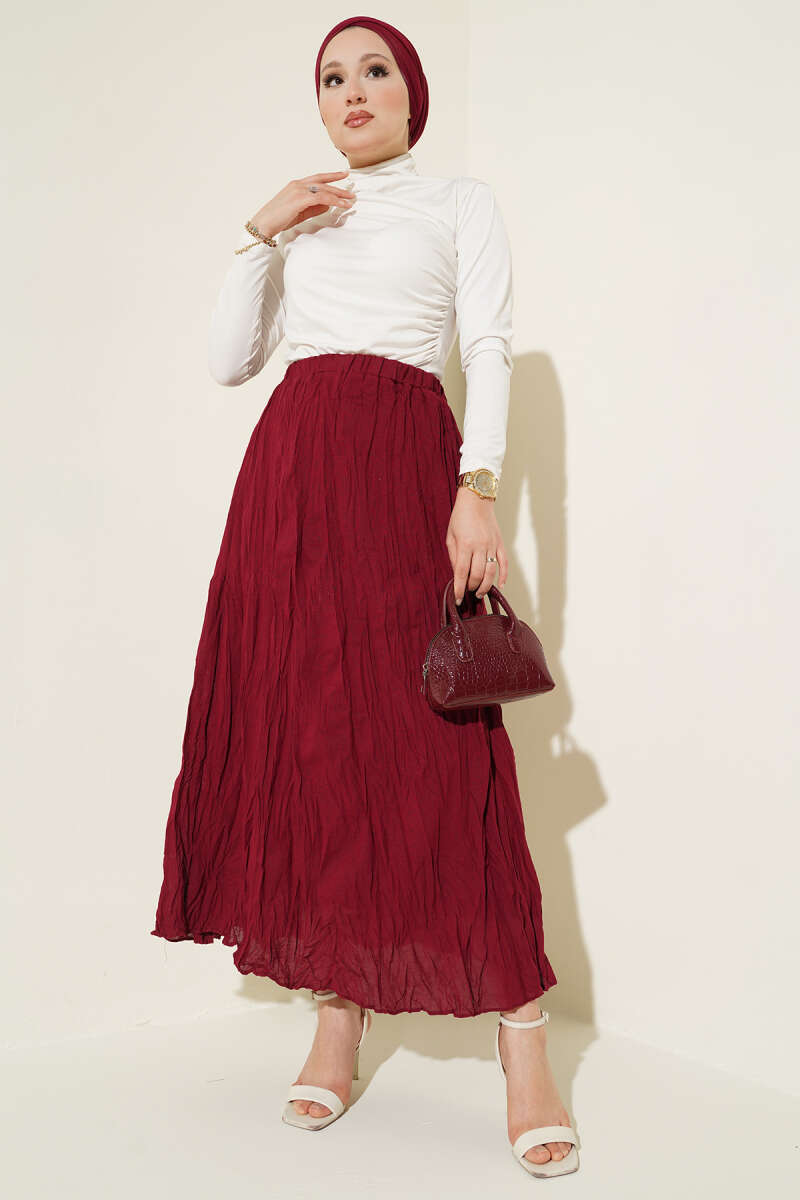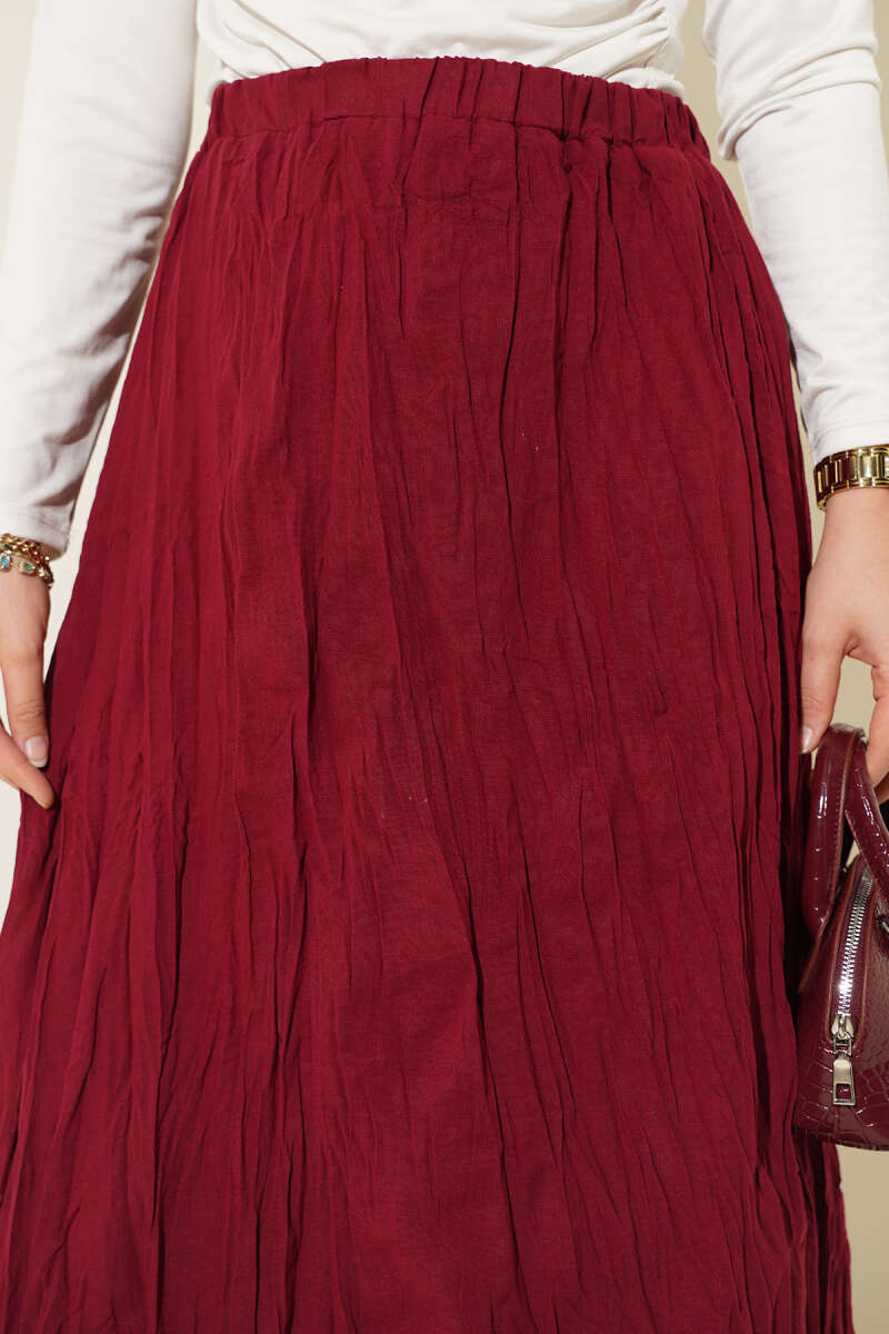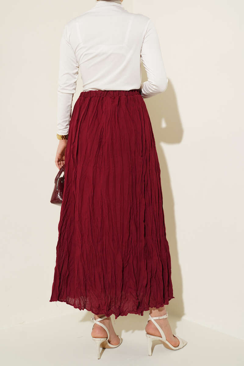 Beli Lastik Detaylı Kloş Scuba Etek Bordo