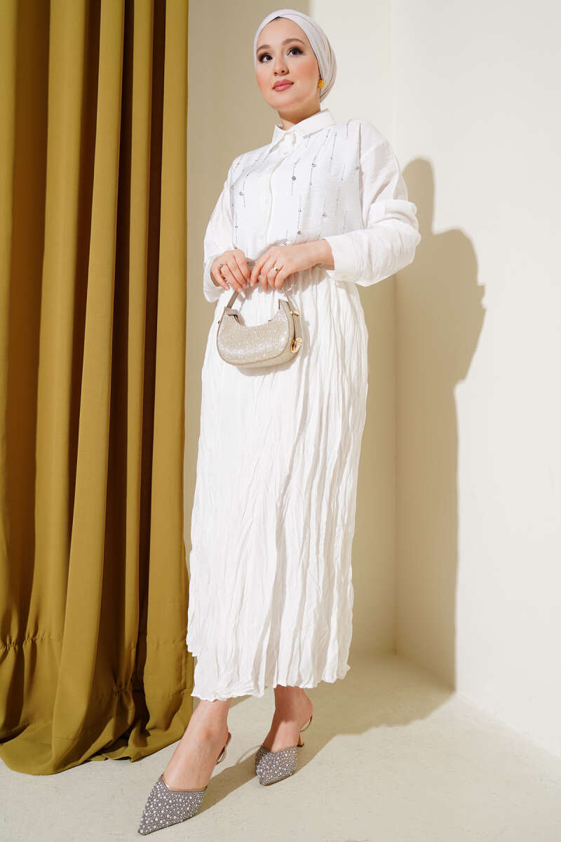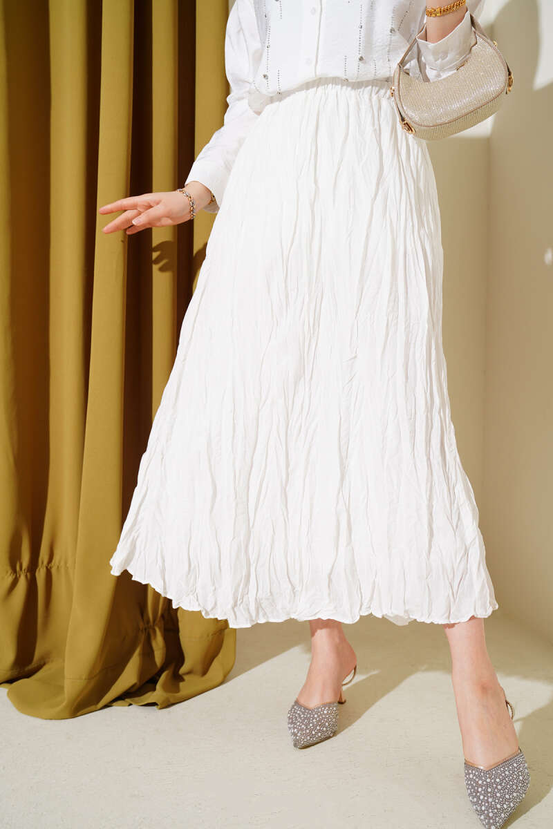 Beli Lastik Detaylı Kloş Scuba Etek Beyaz