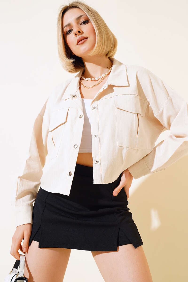 Yeni sezon ceket modelimiz sizlerle beraber. Ceketimiz kısa modeldir. Salaştır. Göğsünde iki adet kapaklı cebi vardır. Kol bilekleri manşetli ve düğmelidir. Ceketimiz kombinlerinize bambaşka bir hava katacaktır.