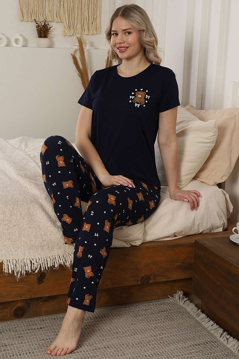 Kısa Kol Ayılı Pijama Takımı Lacivert
