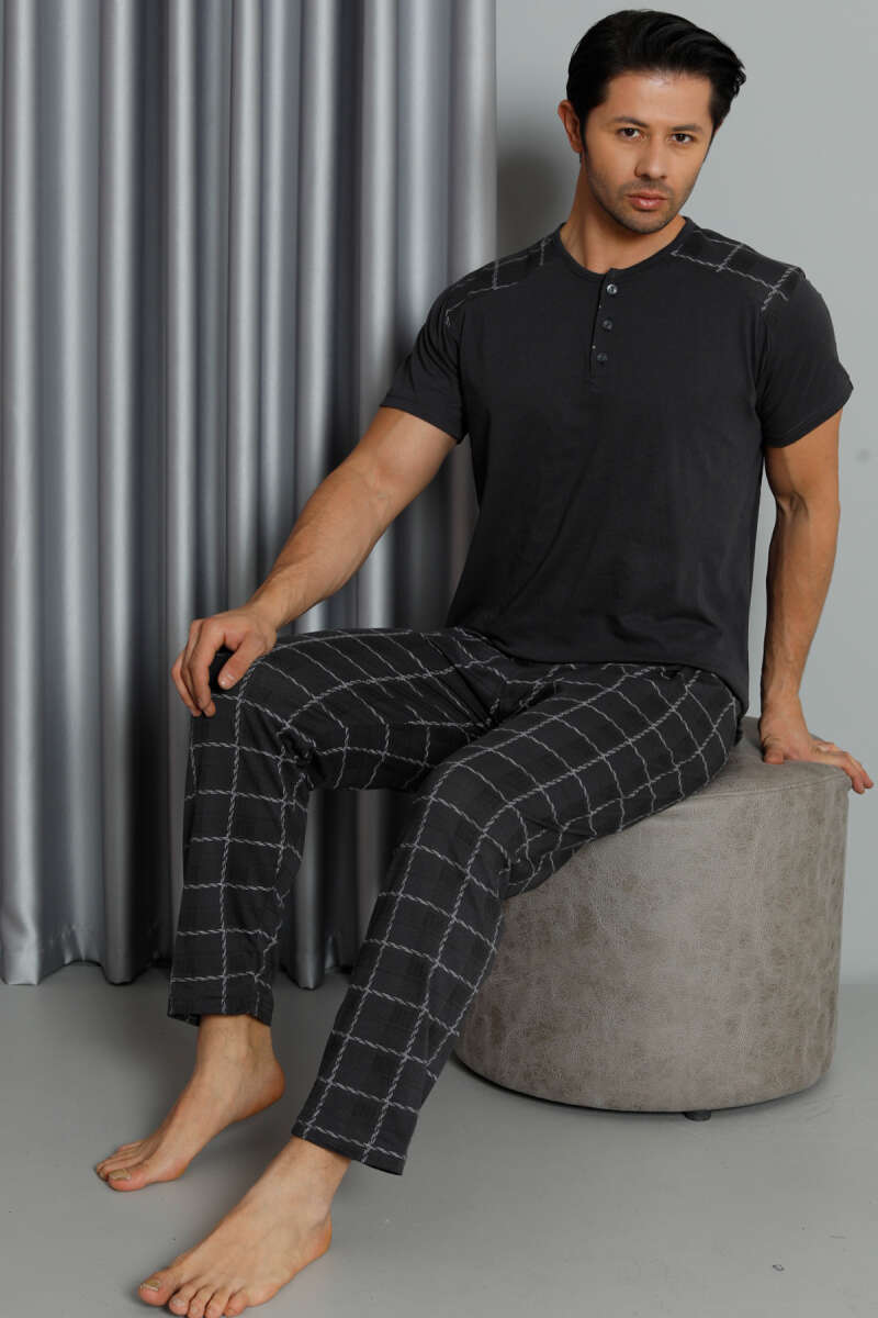 Kısa Kol Ekoseli Erkek Pijama Takım Antrasit
