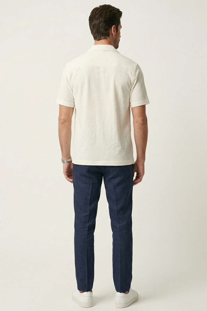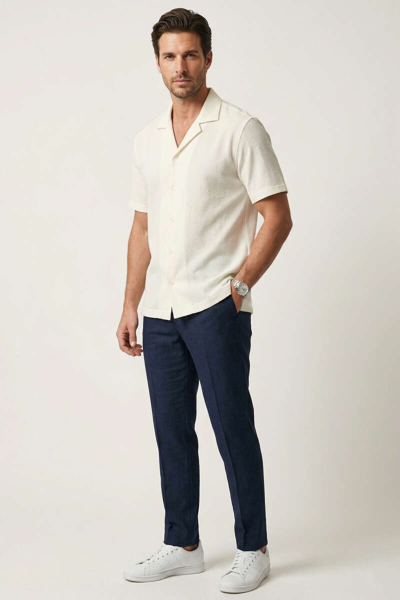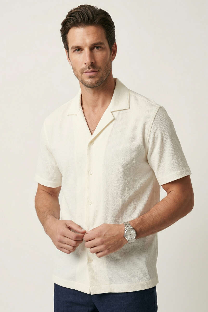Kısa Kol Fitilli Erkek Gömlek Ekru