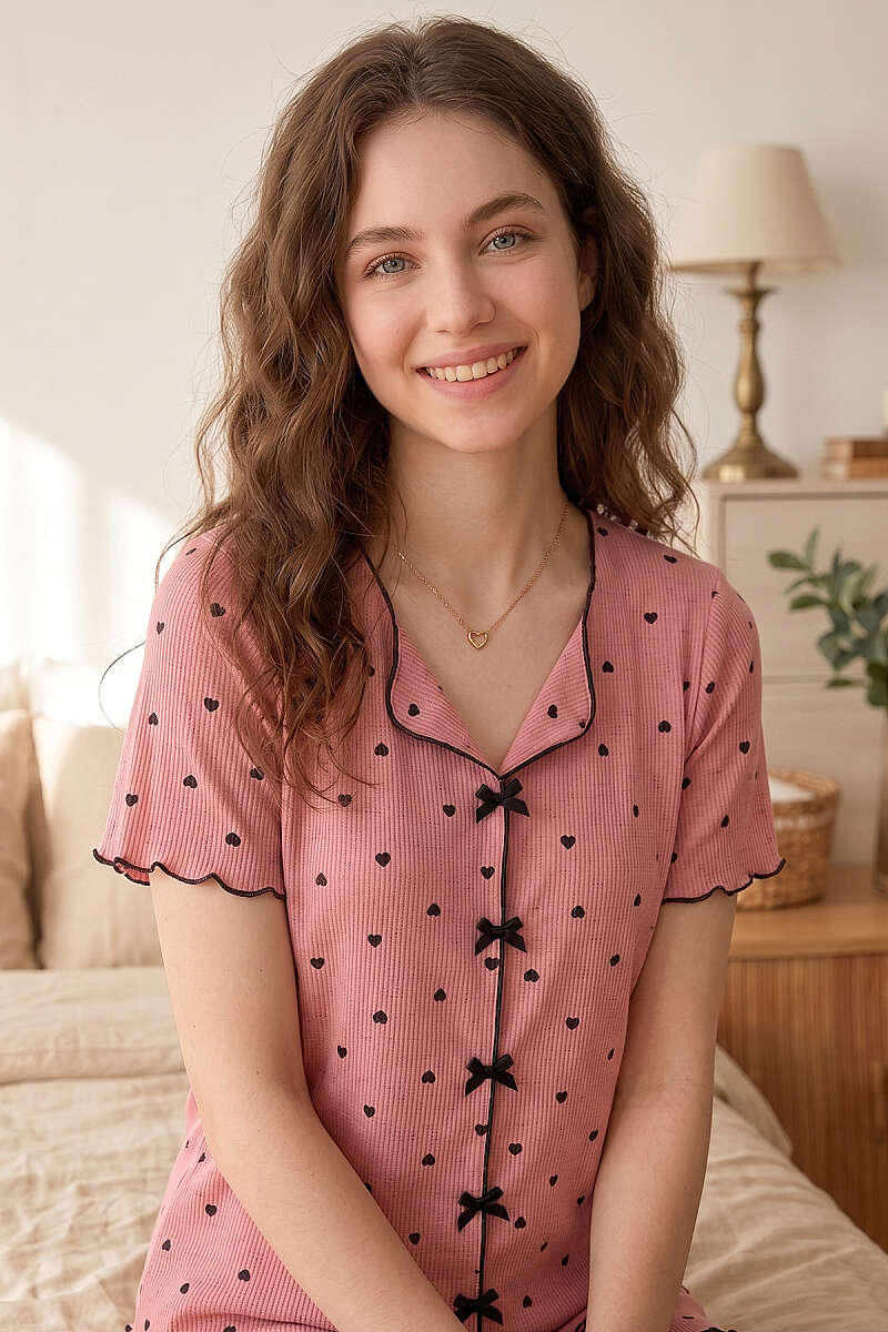 Kısa Kol Kalpli Şortlu Pijama Takımı Gül Kurusu