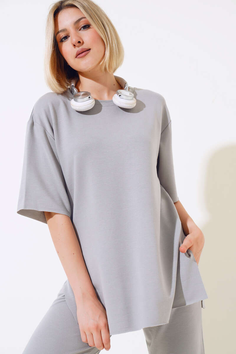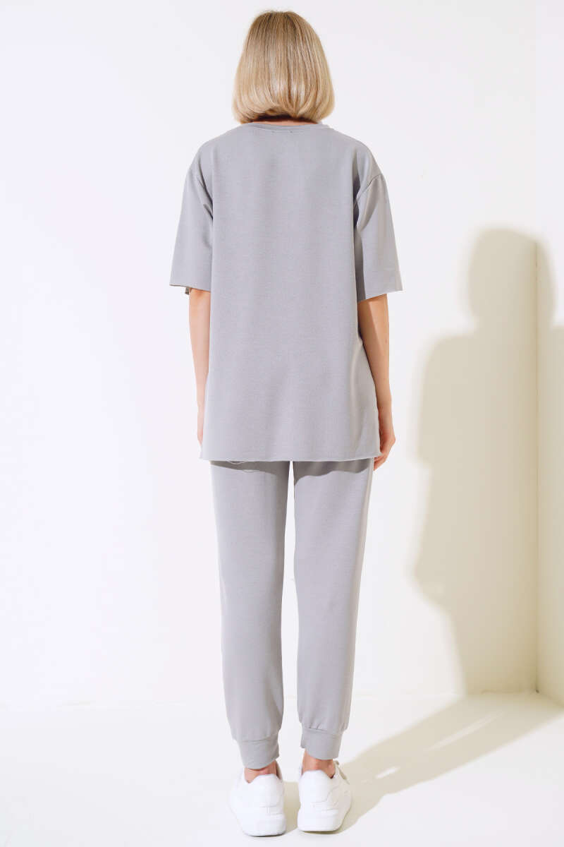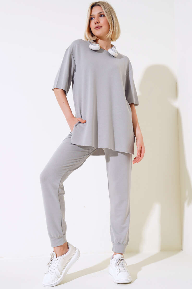 Croplu Triko İkili Takım Füme