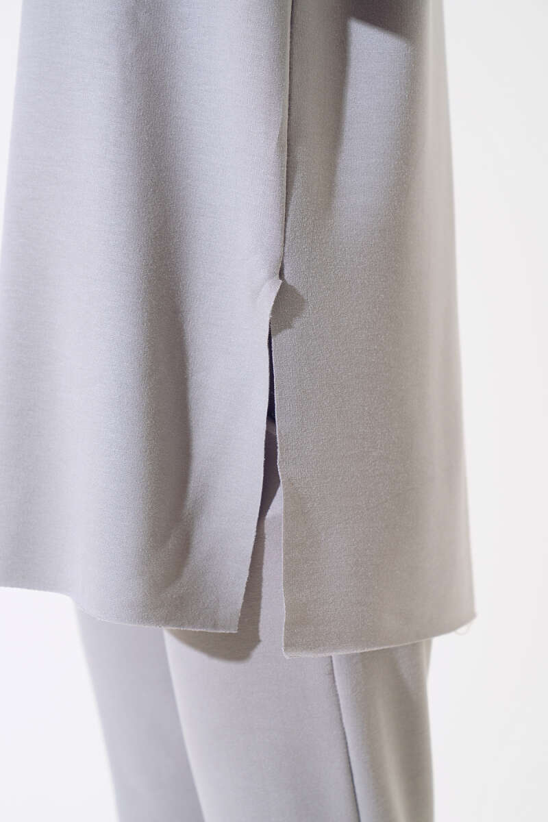 Yakası Fiyonklu Triko İkili Takım Saks