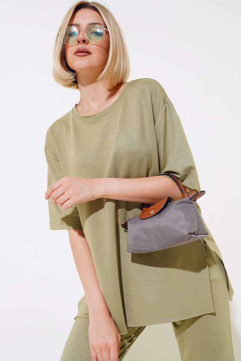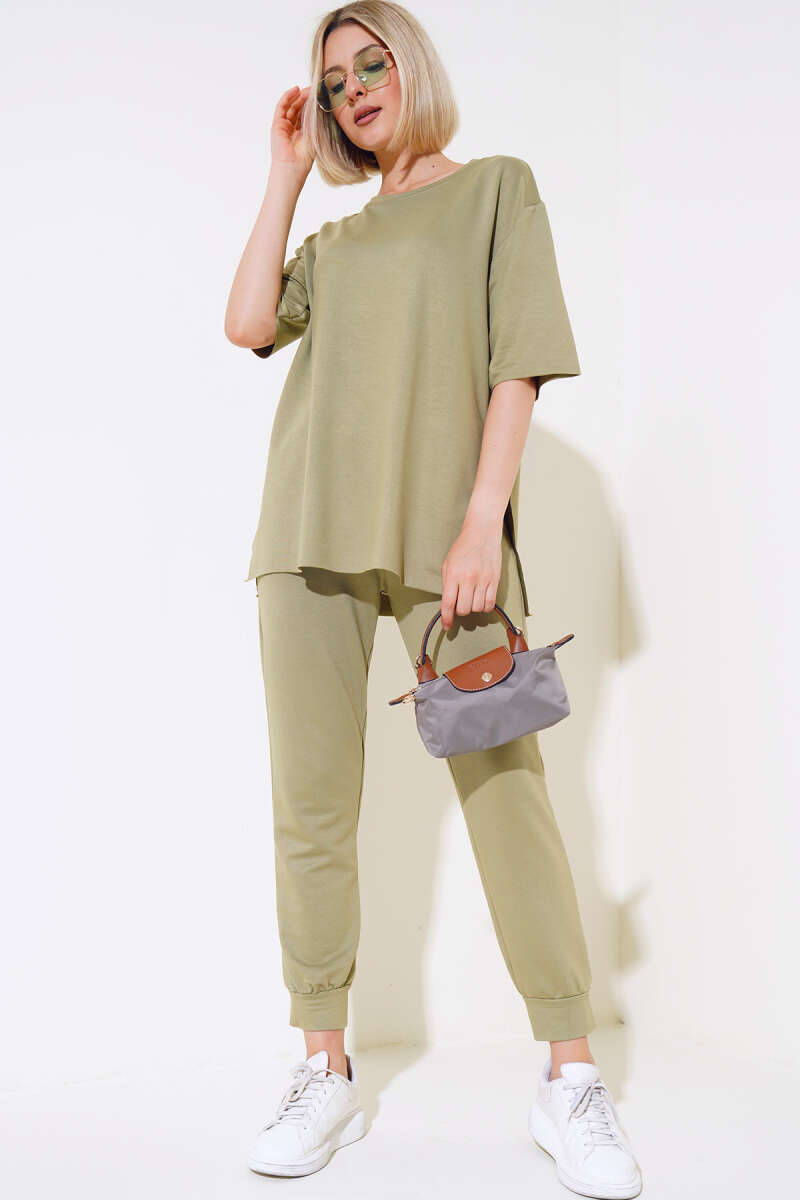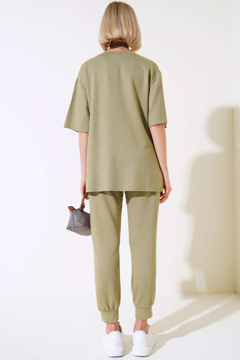 Kabartma Şeritli Taşlı Triko İkili Takım Nefti