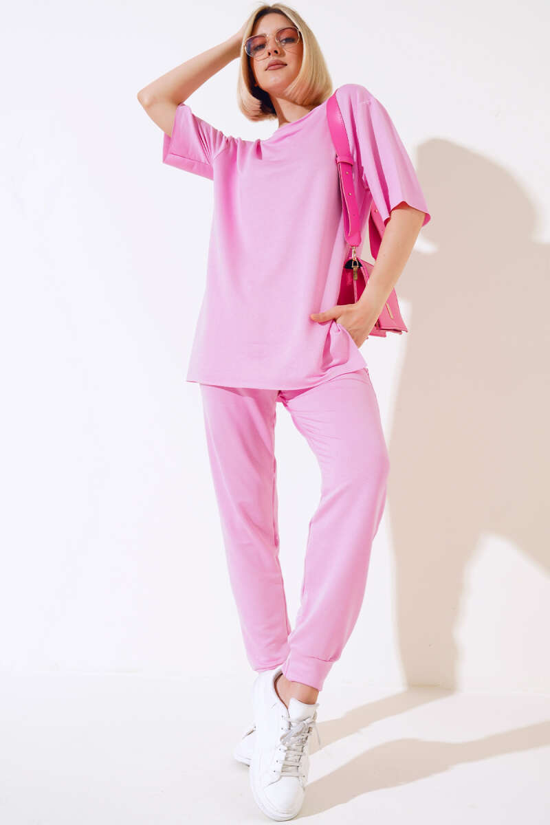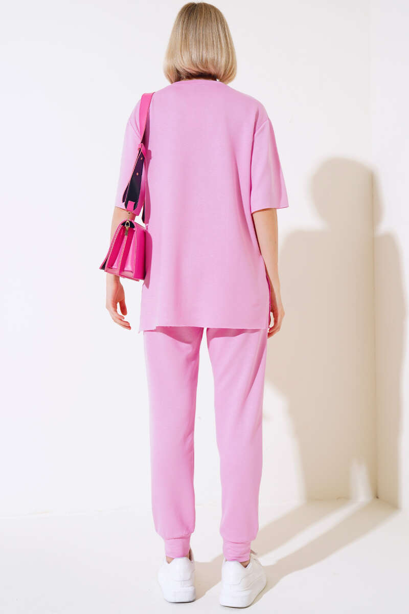 Kabartma Şeritli Taşlı Triko İkili Takım Nefti