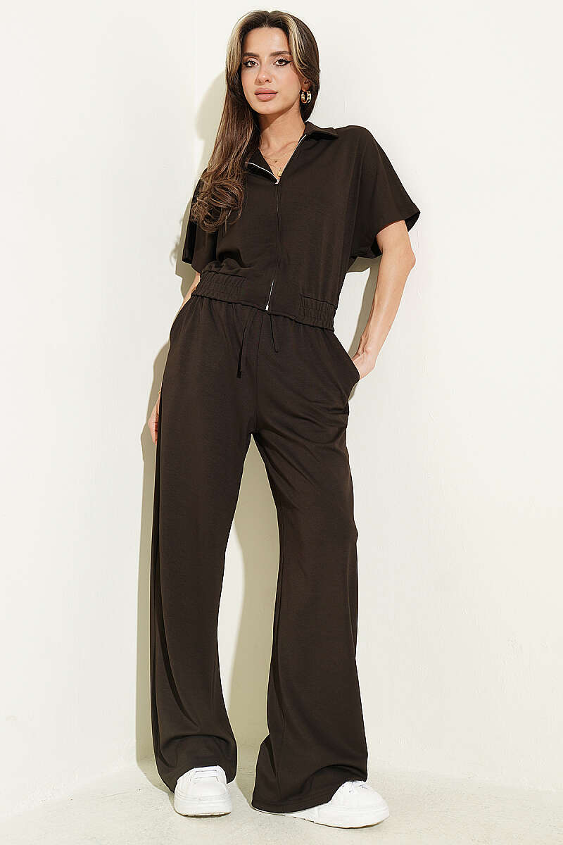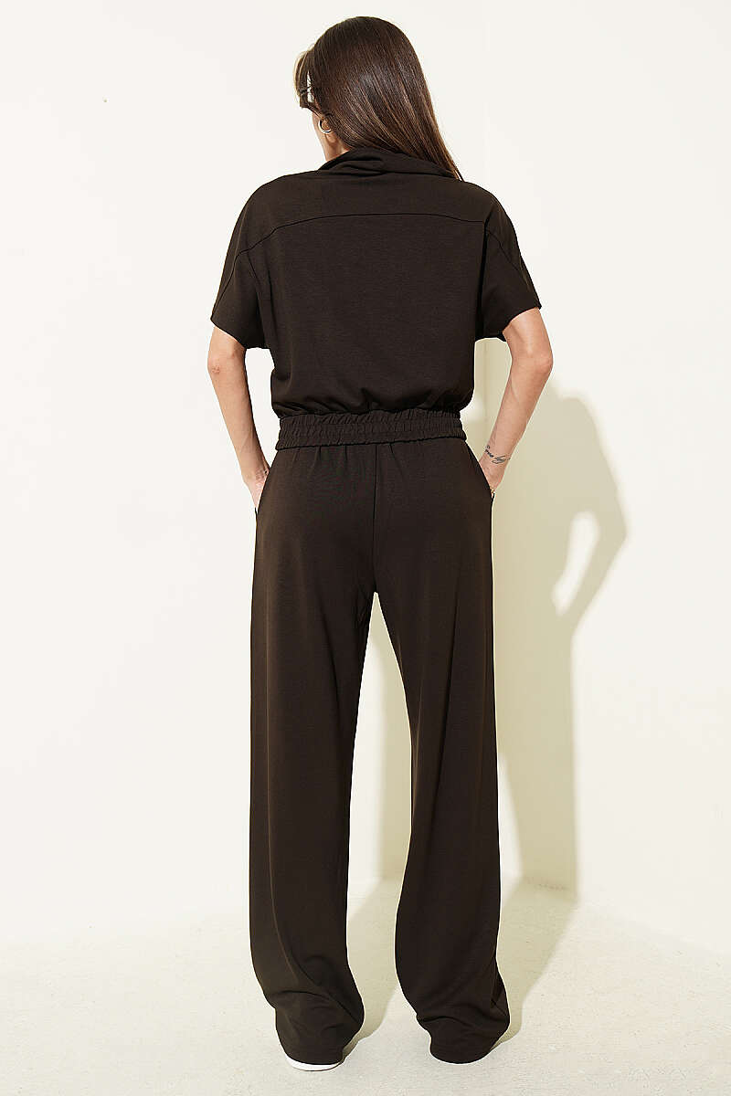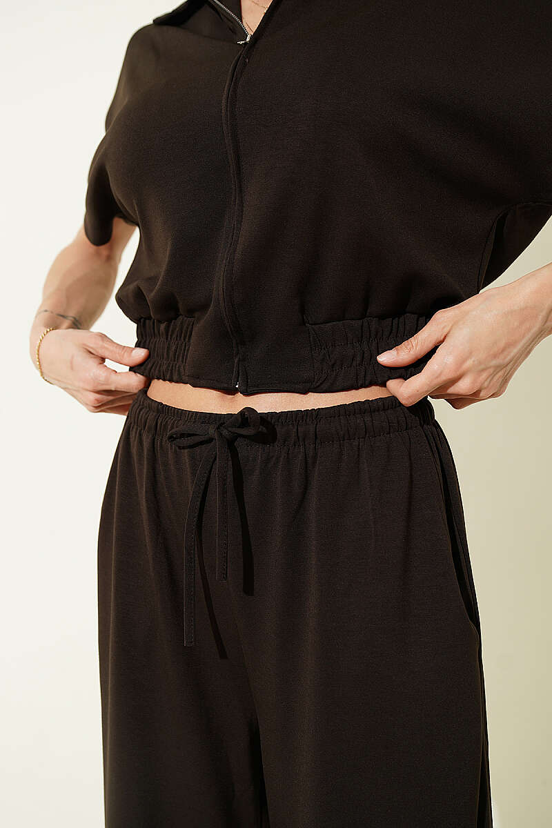Kısa Kollu Bel Lastikli İkili Takım Acı Kahve