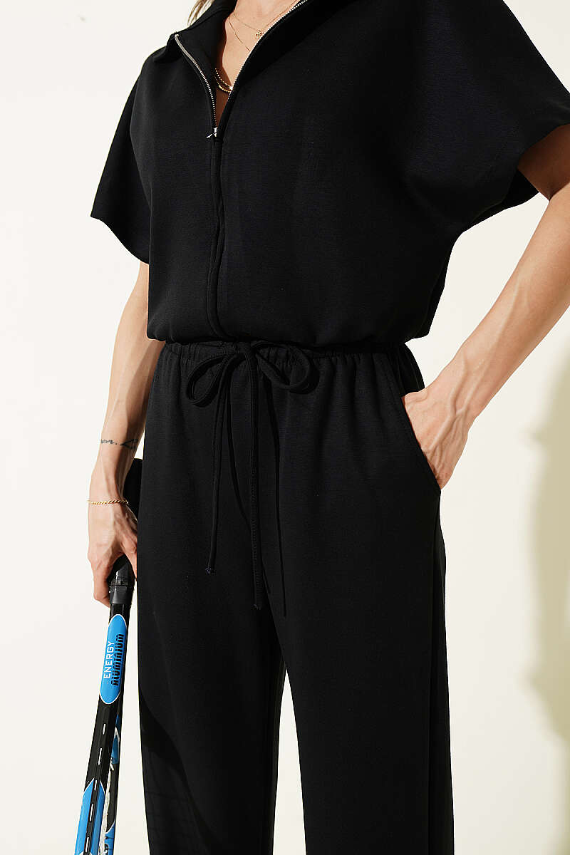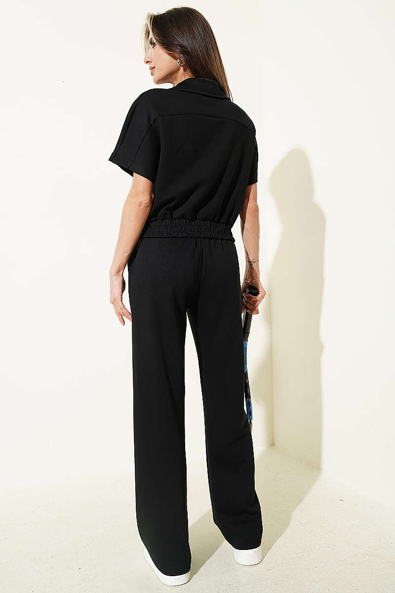 Kısa Kollu Bel Lastikli İkili Takım Siyah